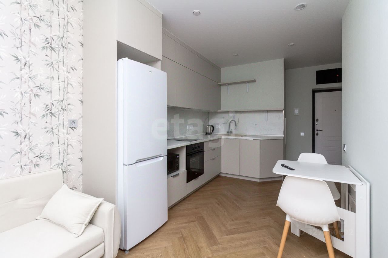 Квартира полностью меблирована и укомплектована всей необходимой бытовой техникой для комфортного проживания: •Двухкамерный холодильник •Встраиваемая варочная поверхность •Духовой шкаф •Микроволновая печь •Электрический чайник •Обеденный стол с двумя стульями •Уютный диван •Телевизор •Кондиционер •Двуспальная кровать с прикроватными тумбами •Стиральная машина-автомат •Накопительный водонагреватель