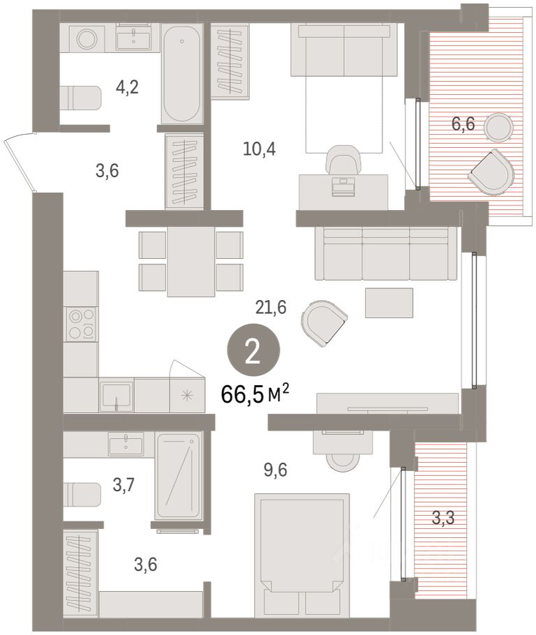 Квартира с кухней-гостиной и двумя спальнями в жилом районе ''Зарека''. Особенности планировки: второй санузел, гардеробная, мастер-спальня, предчистовая отделка, разнесённые спальни, терраса на крыше. О доме Замкнутый квартал высотой 8 этажей с 16-ти этажной башней-доминантой и двором на стилобате двухуровневого паркинга.