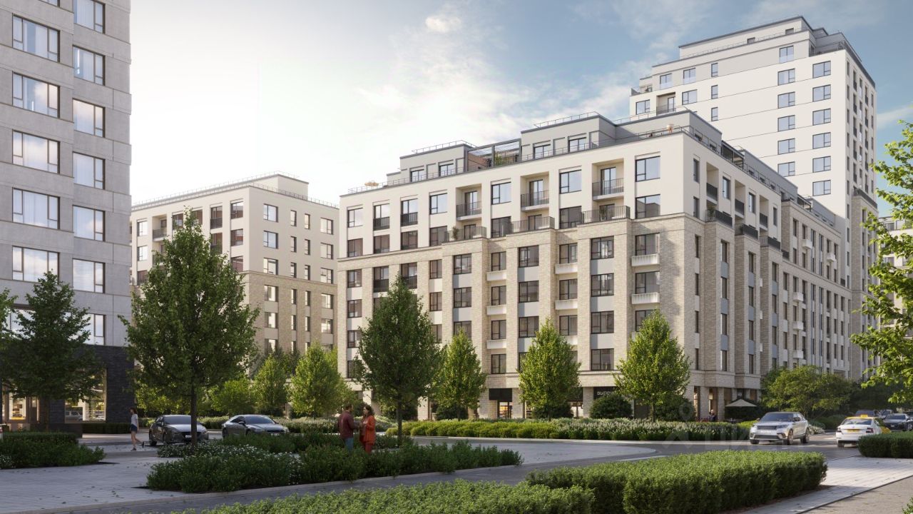 Фасады первых этажей выполнены из клинкерного кирпича, выше - штукатурные. Акцентом на фасаде являются металлические импосты окон, темно-серого цвета, который будет контрастировать со светлыми оттенками самого фасада. квартиры в нашей базе: ЗРК02.1-Ж5.12.2.