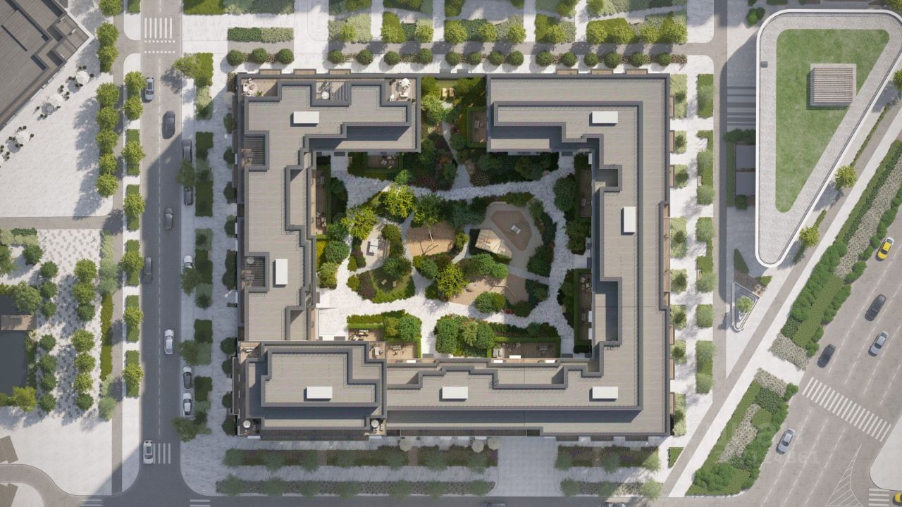 С севера на юг территорию будет пронизывать пешеходный бульвар. Мы мыслим это общественное пространство как главный центр притяжения. На нём будут сосредоточены основные детские игровые и спортивные зоны, места для встреч и спокойного отдыха. Он также сыграет роль мостика, ведущего к другим нашим проектам — ''Европейскому кварталу'' и ''Дому у озера''.