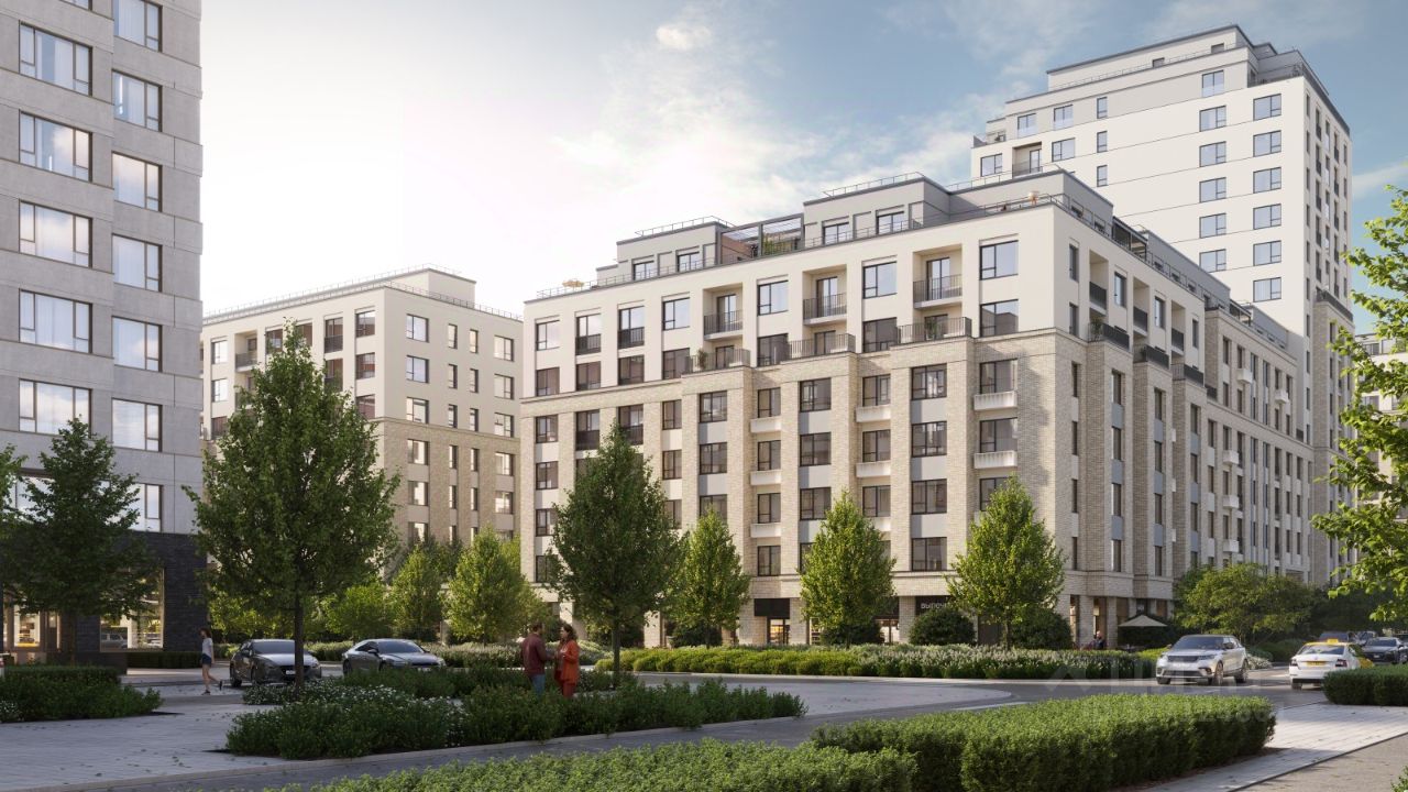 Фасады первых этажей выполнены из клинкерного кирпича, выше - штукатурные. Акцентом на фасаде являются металлические импосты окон, темно-серого цвета, который будет контрастировать со светлыми оттенками самого фасада. квартиры в нашей базе: ЗРК02.1-Ж2.4.3.