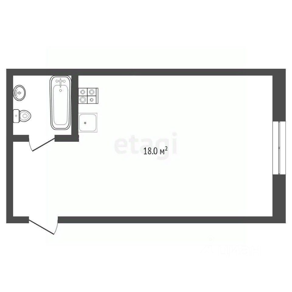 Студия c новым ремoнтом. Свой личный санузел с полноценной ванной.