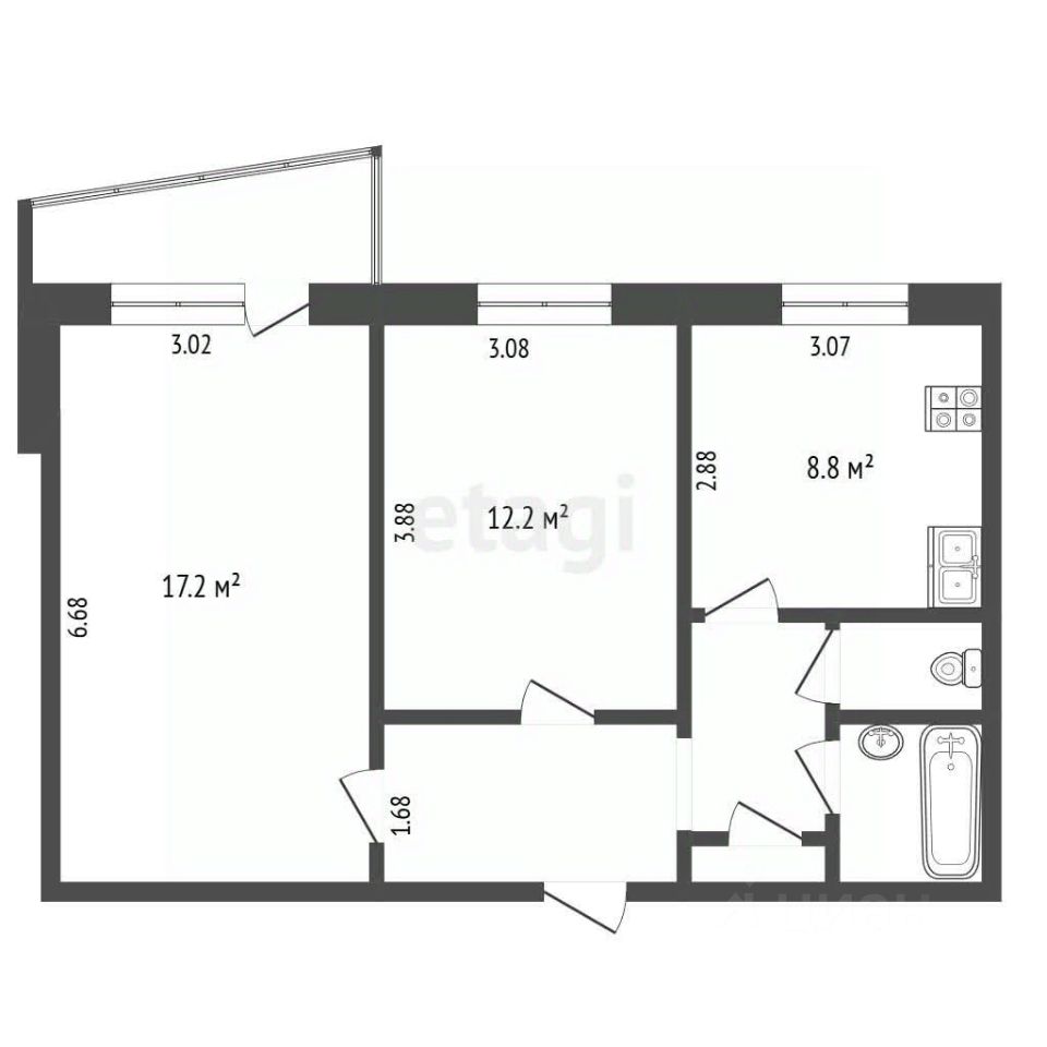 КУХНЯ 8,4 м2. с кухонным гарнитуром, встроенным духовым шкафом с варочной панелью, вытяжкой. Сан. техника в отличном состоянии, фильтр для воды-все, что видите на фото остается.