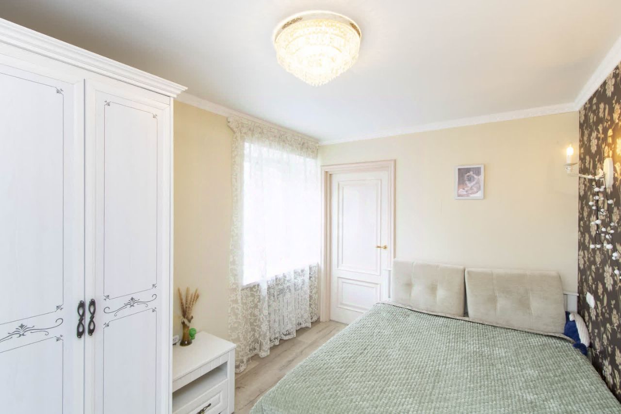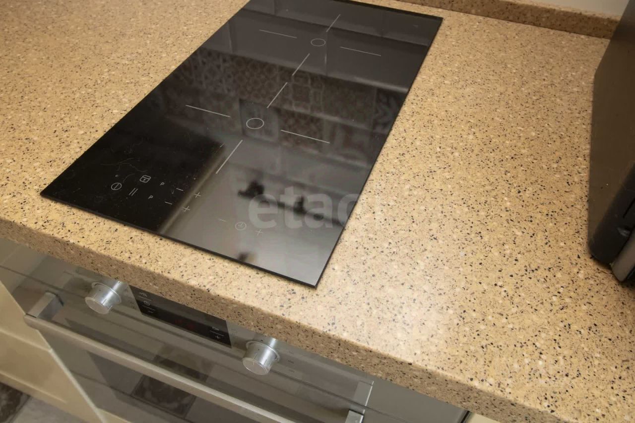 Кухня оборудована гарнитуром с фасадами из натурального дерева и столешницей из искусственного камня. В комплекте остается встроенная техника: посудомоечная машина, индукционная варочная панель, духовой шкаф и вытяжка. В спальне обустроена удобная гардеробная система, экономящая место и обеспечивающая порядок. Транспортная доступность на высоком уровне — рядом остановки общественного транспорта, выезд на основные магистрали, что упрощает перемещение по городу.