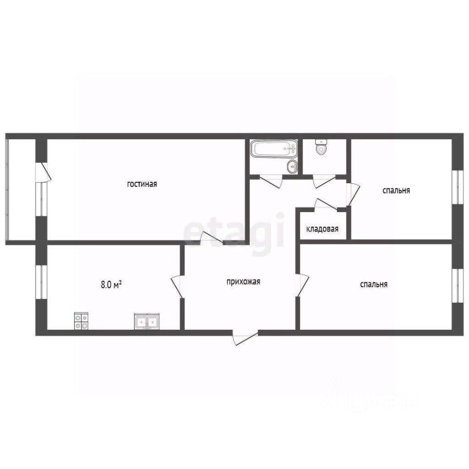Внутри вас ждет просторная планировка с тремя светлыми комнатами, которые можно легко адаптировать под ваши нужды.