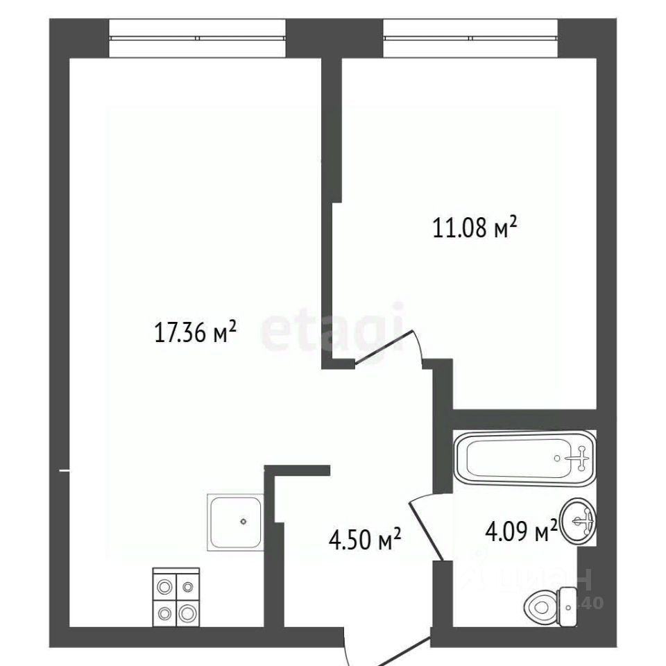 О квартире: просторная кухня-гостиная 17,36 кв.м , спальня 11,08 кв.м , санузл совмещен . Увеличенные оконные проемы, что придает комнатам больше пространства и естественного света, высокие потолки (2,72 м.).
