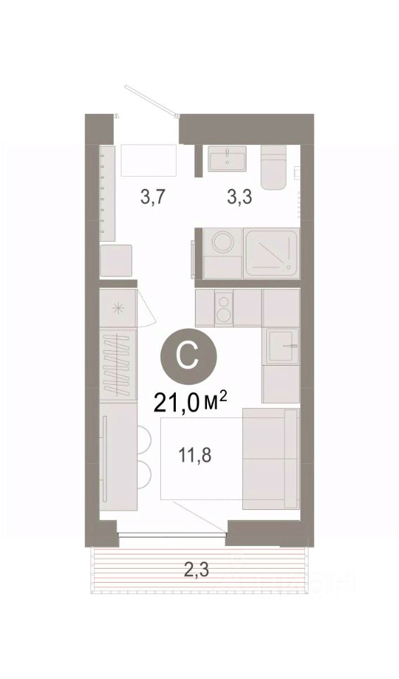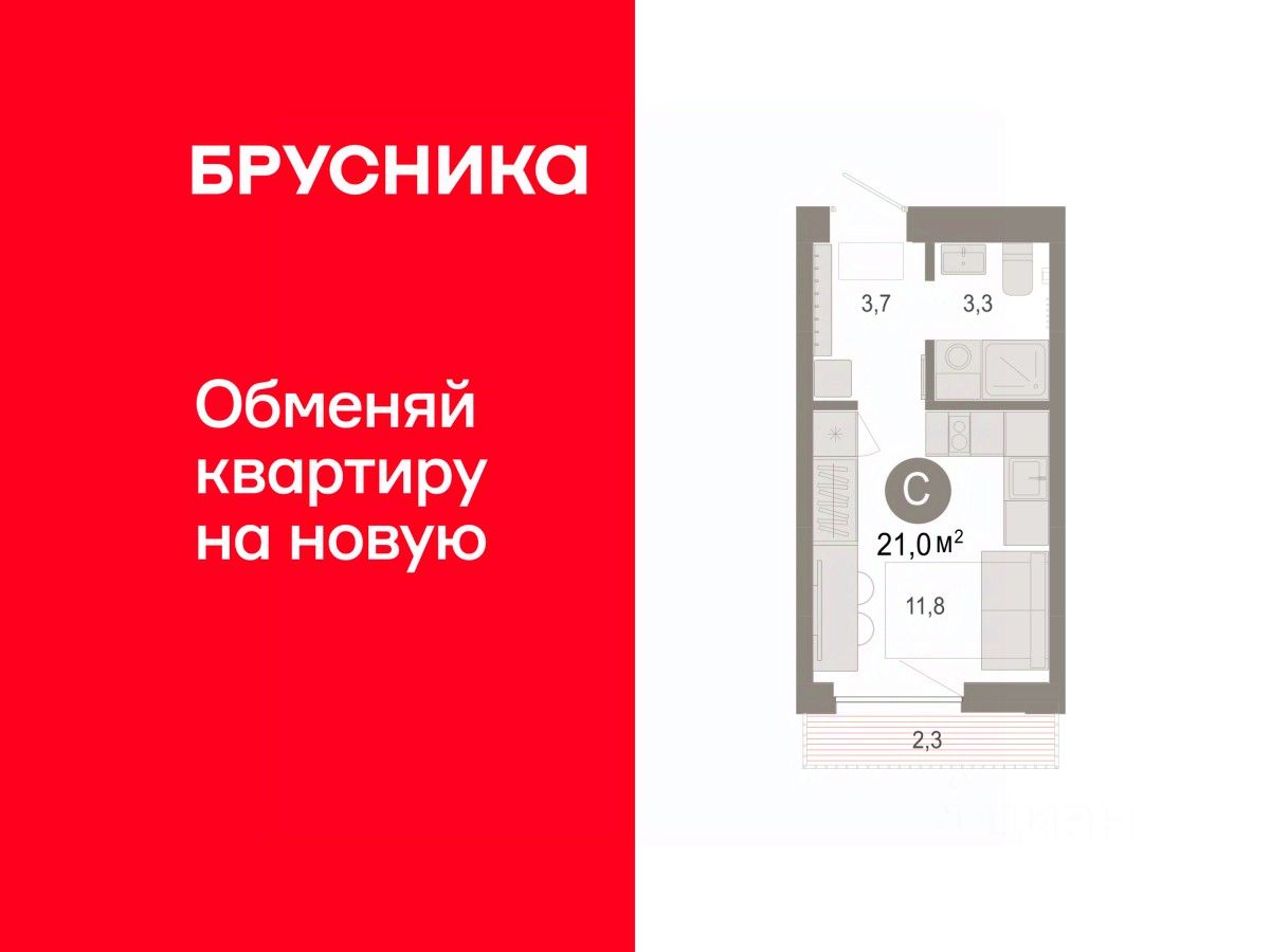 Студия в Октябрьском на Туре. Особенности планировки: балкон, предчистовая отделка. квартиры в нашей базе: ОКТ09-Ж7.3.2.