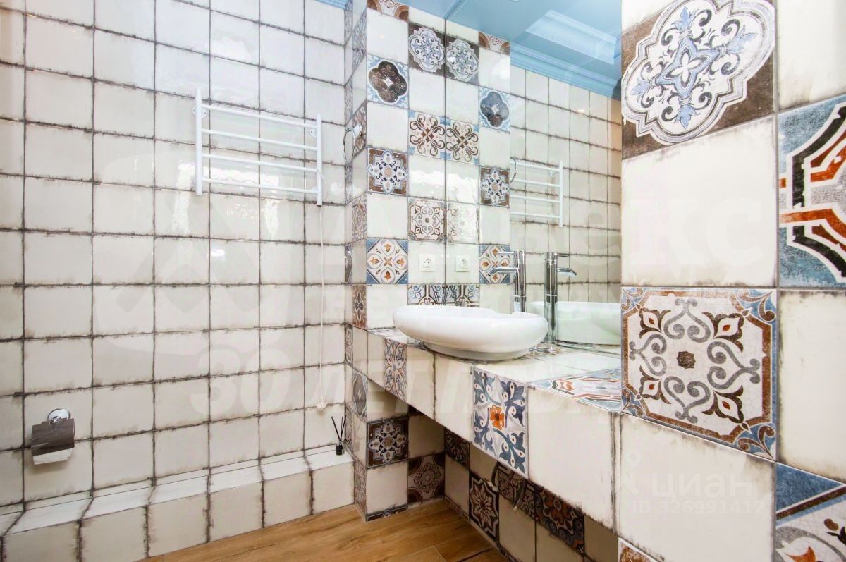 Полы - итальянский керамогранит. Стены - декоративная штукатурка (различные техники нанесения). В столовой - художественная фреска с пейзажем. Балкон утеплен и объединен с кухней, выведен теплый пол от отопления. Санузел: Совмещенный, отделка кафелем, качественная сантехника, душевая кабина, инсталляция, скрытые люки для счетчиков. Освещение: Многоуровневое (потолочные и подвесные светильники, люстры, бра), установлен декоративный камин с эффектом дыма и функцией обогрева.