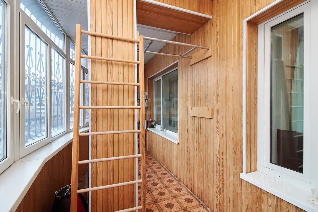 Просторная лоджия с выходом из гостиной. Два остекленных балкона, обшитых деревом (зона хранения или отдыха). Раздельный санузел. Всего две квартиры на этаже (минимум соседей).