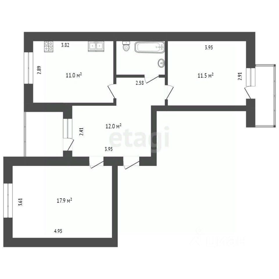 Планировка квартиры: - Просторная кухня — место для кулинарных шедевров и семейных ужинов. - Две изолированные комнаты, которые создадут атмосферу уюта и приватности. - Раздельный санузел — дополнительное удобство для вашей семьи.