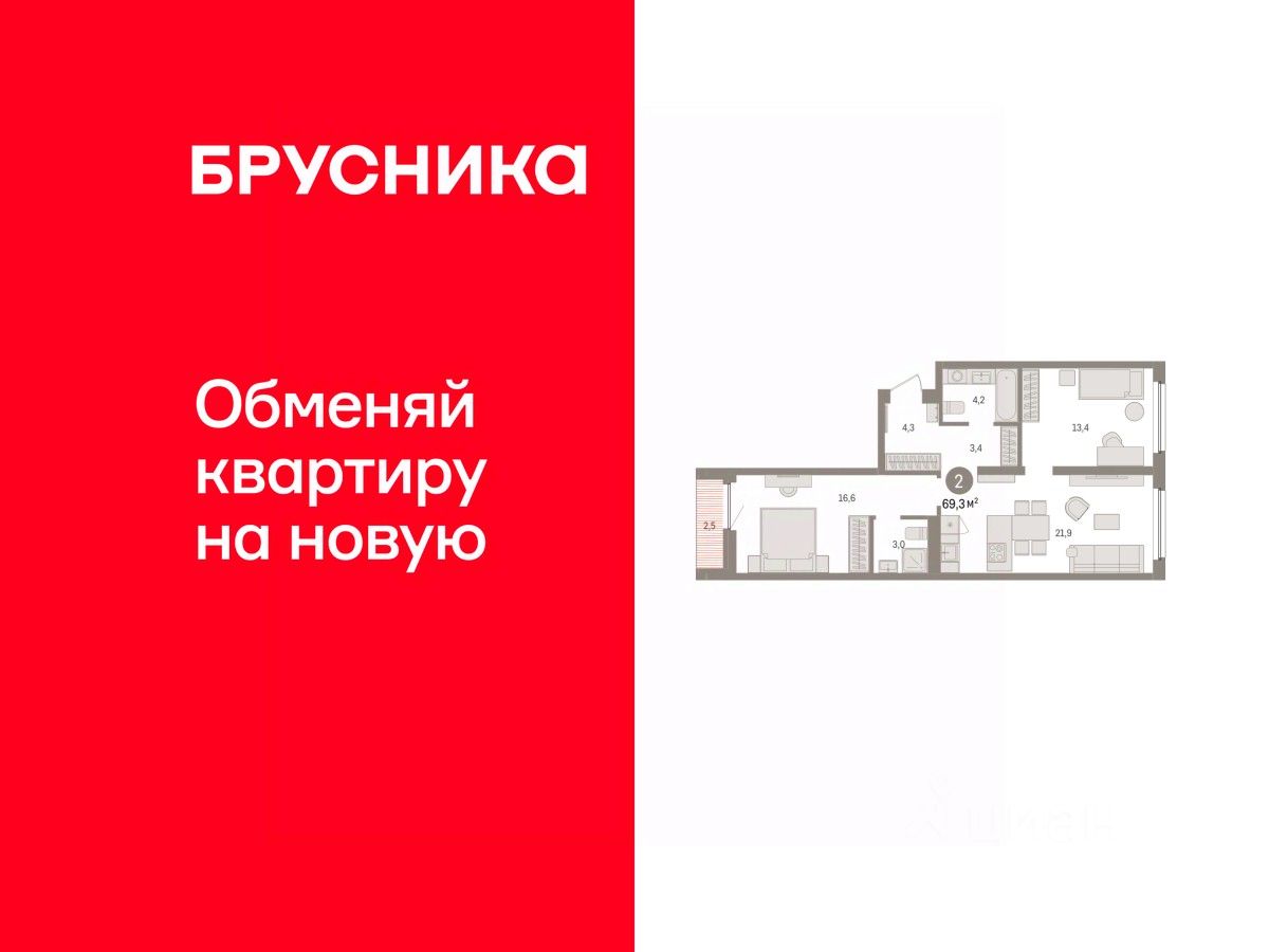 Квартира с кухней-гостиной и двумя спальнями в жилом районе ''Зарека''. Особенности планировки: вид во двор, второй санузел, лоджия, окна на две стороны, предчистовая отделка, разнесённые спальни. О доме Замкнутый квартал высотой 8 этажей с 16-ти этажной башней-доминантой и двором на стилобате двухуровневого паркинга.