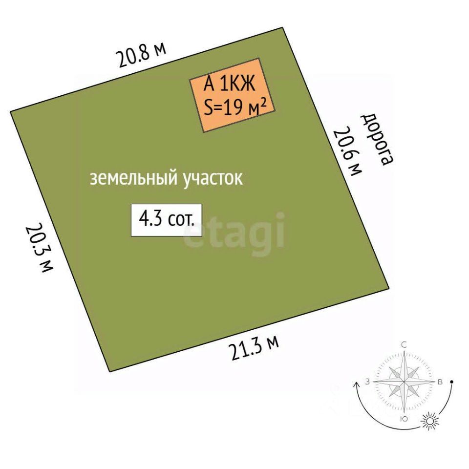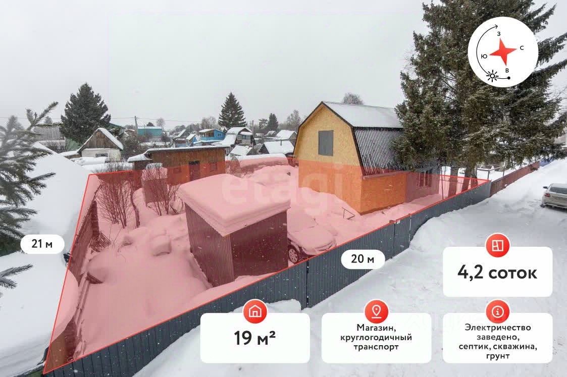 Дом расположен на участке в 4,2 сотки. Имеется электричество, центральное водоснабжение, в дальнейшем в СНТ планируется завести газоснабжение.