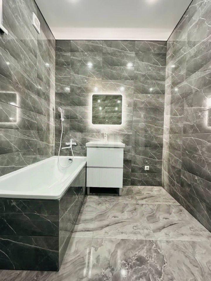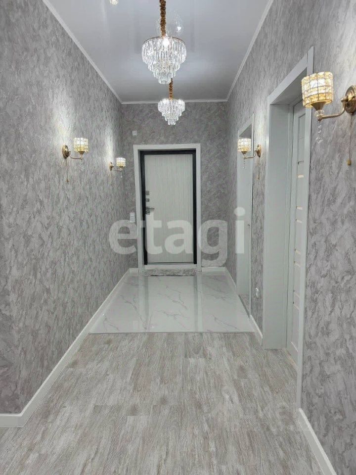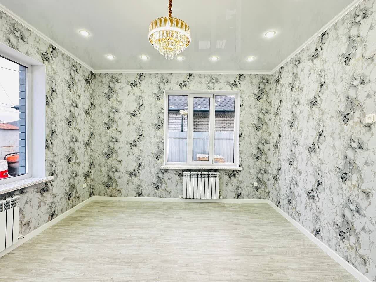 В доме выполнен качественный современный ремонт с использованием практичных материалов: натяжные потолки, ламинат, керамическая плитка и обои.