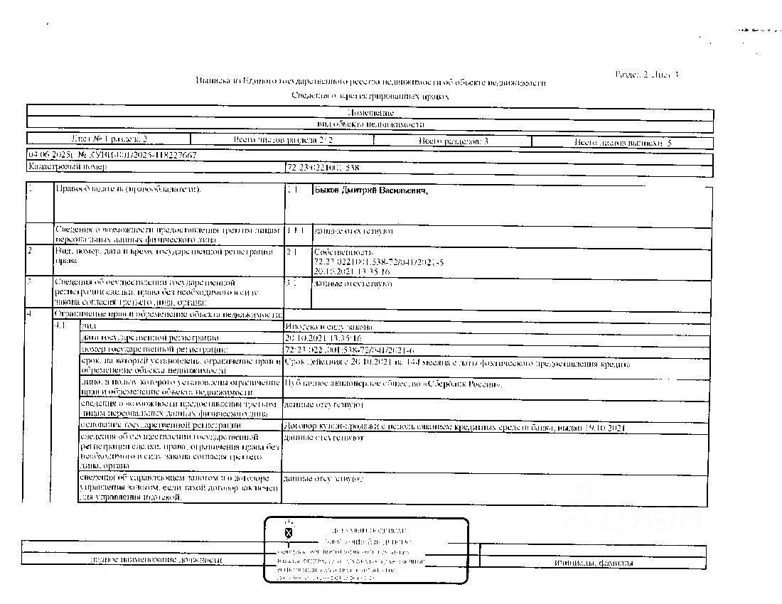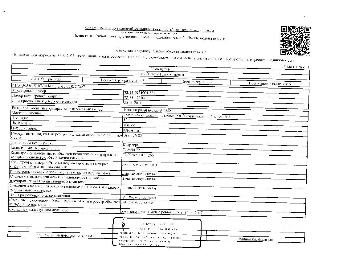 Должник: Администрация г. Тюмени, собственник: Быков Д.В. Лот: Жилое помещение (квартира), площадь 12,3 кв.м, кадастровый номер: 72:23:0221001:538, г. Тюмень, ул. Харьковская, д. 69А, кв. 203 (информация о зарегистрированных лицах - отсутствует, задолженность по капитальному ремонту на 07.11.2025 составляет - 5 т.р), н/ц: 1151920 р., з-к: 1151 р, код: 0014, рег. 72-010405,