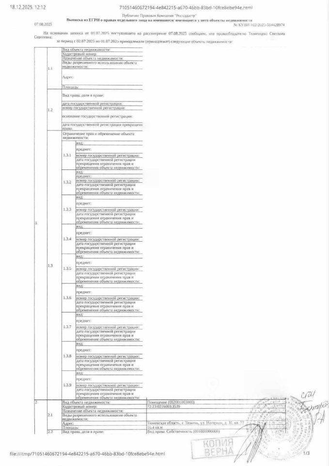 Должник: Тюлькина (Тюменцева) С.С., собственник: Тюлькина (Тюменцева) С.С. Лот: Нежилое помещение (гараж), площадь 16,4 кв.м., кадастровый номер: 72:23:0216003:3539, г. Тюмень, ул. Нагорная, д.31, пом.77, н/ц: 301600 р., з-к: 45240 р., код: 0001, рег. 72-011158