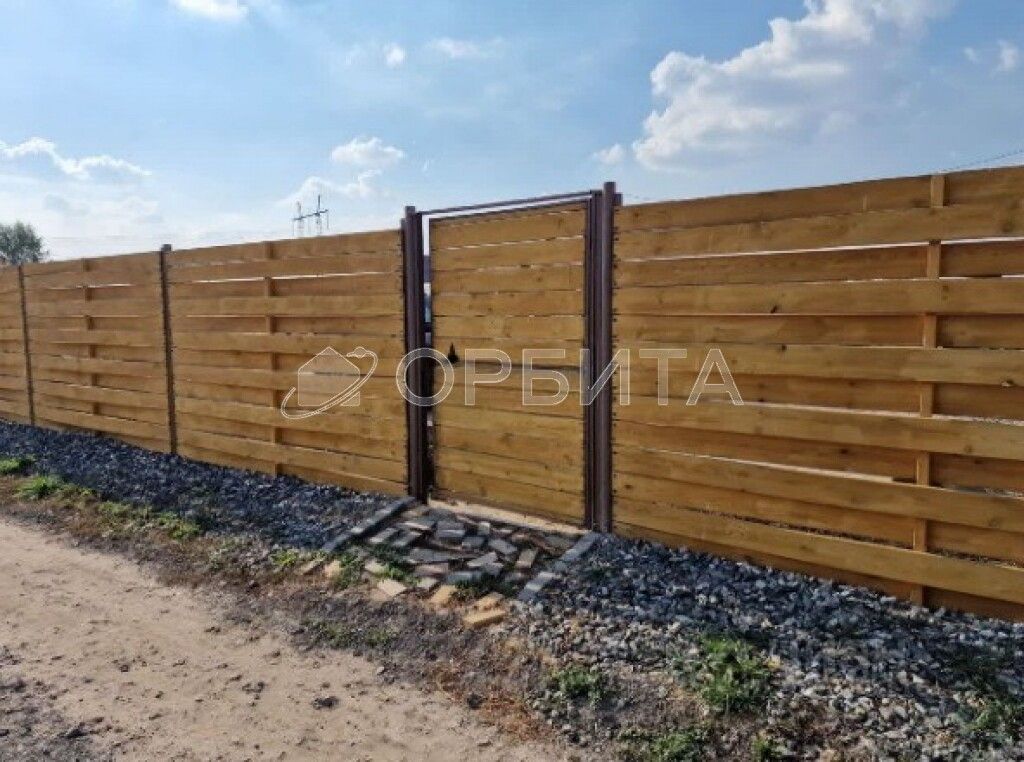 Участок отсыпан, обнесён забором, есть распашные ворота и место для парковки транспорта.