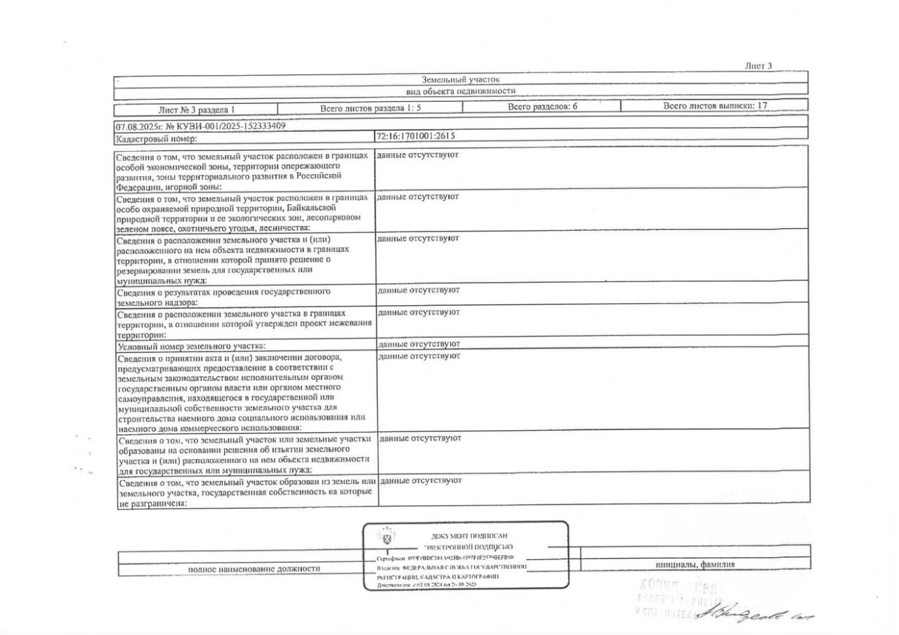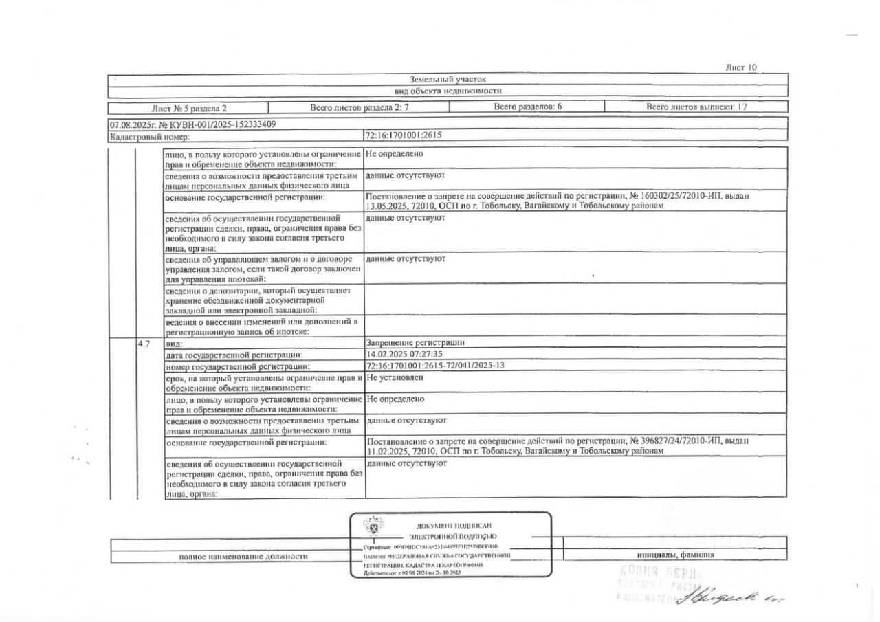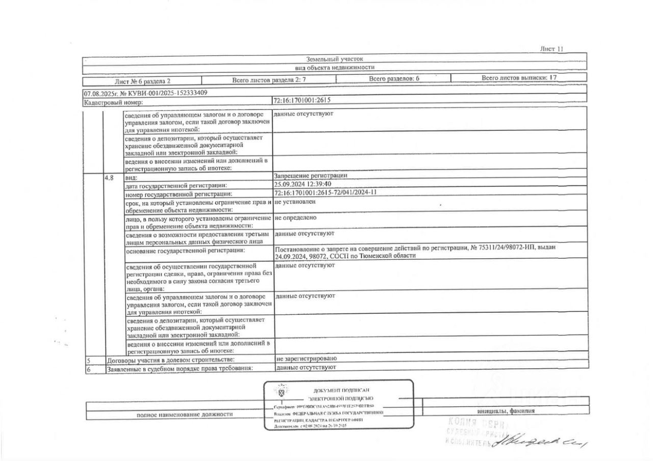 Должник: Овчарова Я.В., собственник: Овчарова Я.В. Лот: Земельный участок (земли населенных пунктов, для ведения личного подсобного хозяйства), площадь 583 кв.м., кадастровый номер: 72:16:1701001:2615, Тобольский р-н, п. Прииртышский, ул. Лесная, 10А, н/ц: 569000 р., з-к: 85350 р., код: 0001, рег. 72-011288