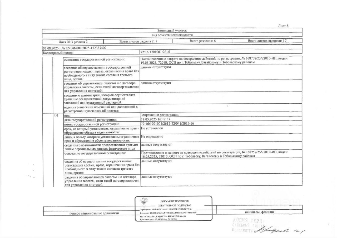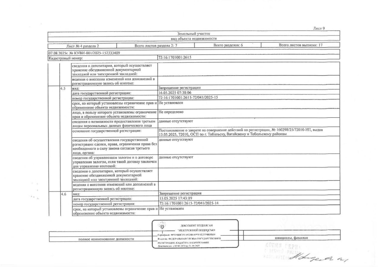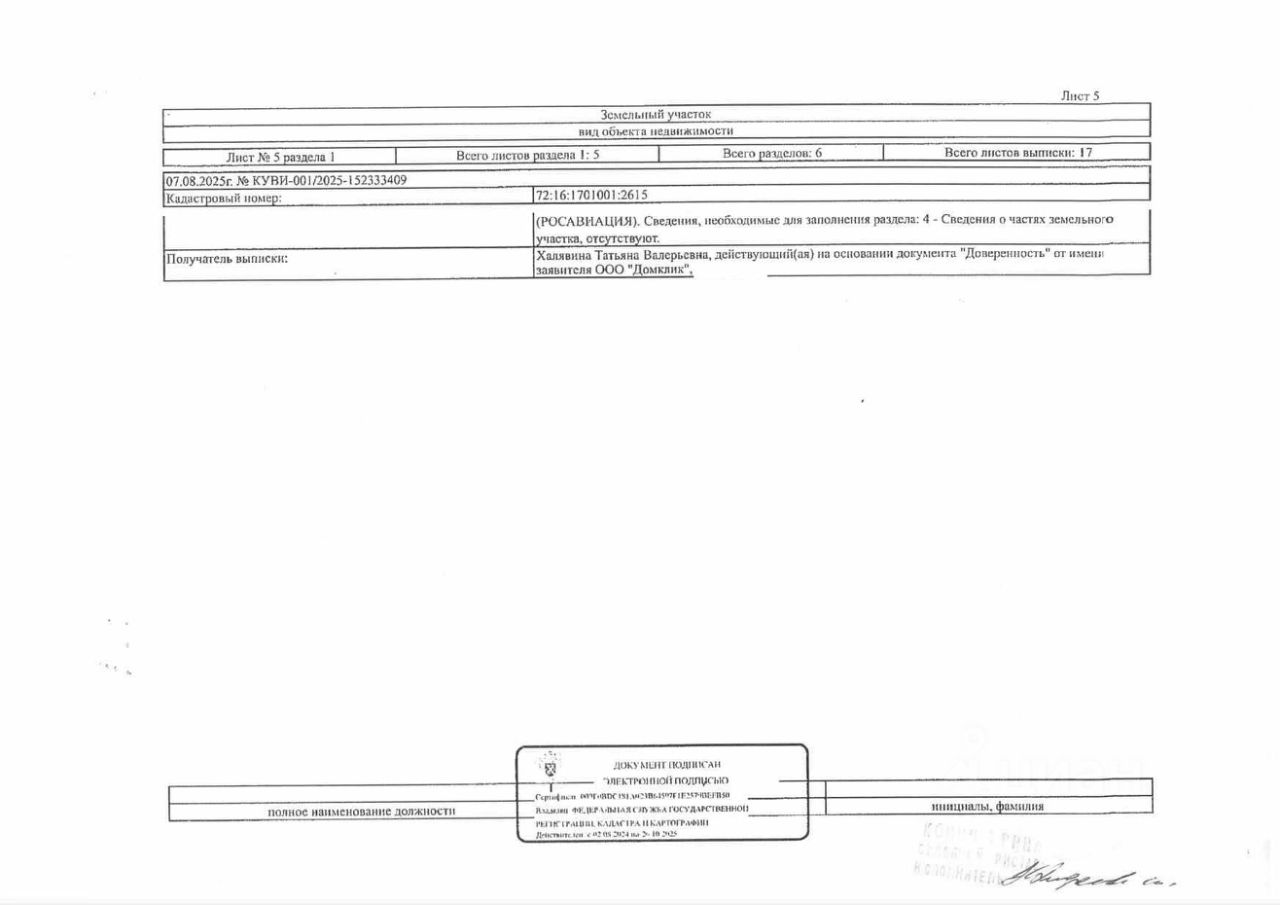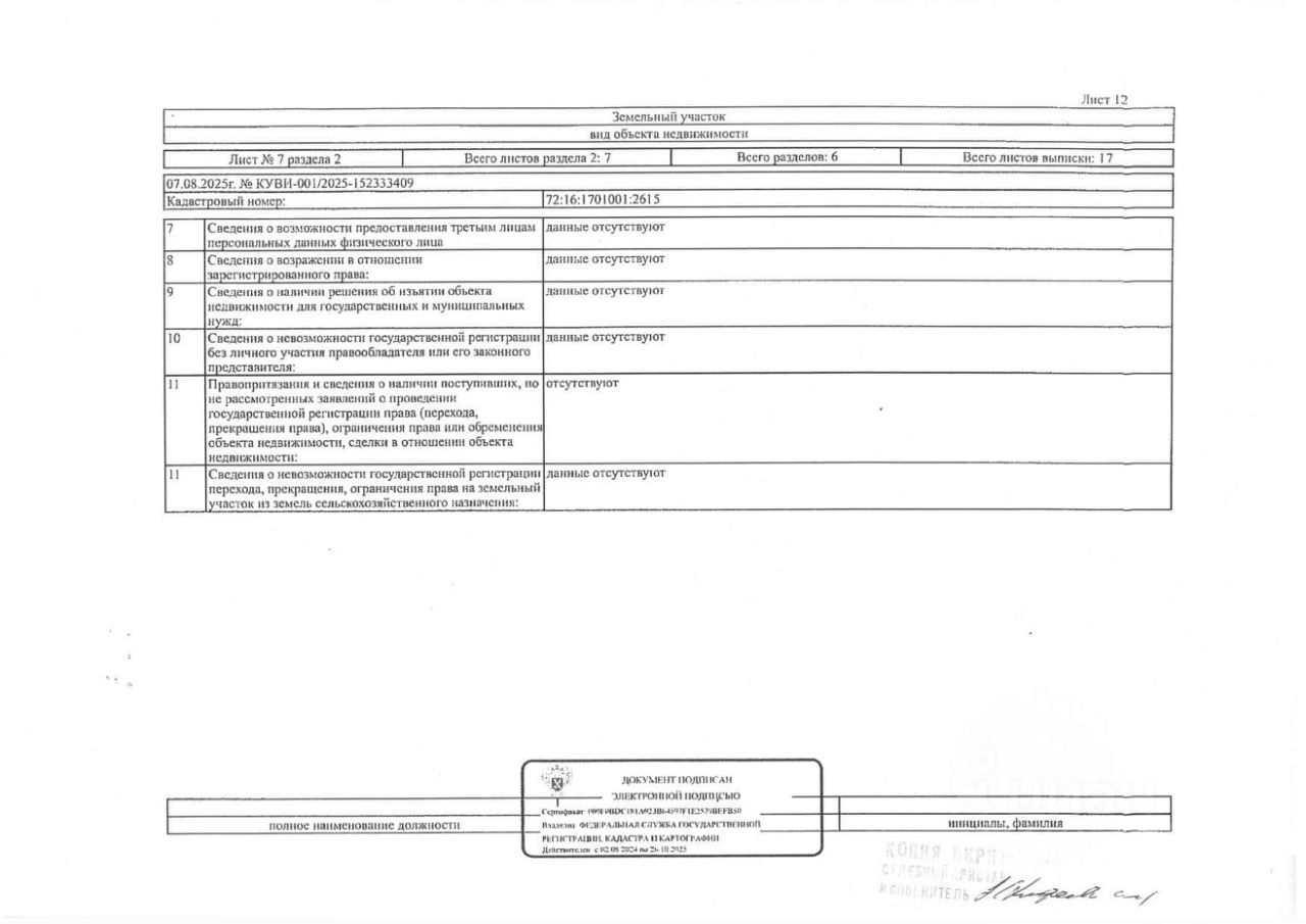 Должник: Овчарова Я.В., собственник: Овчарова Я.В. Лот: Земельный участок (земли населенных пунктов, для ведения личного подсобного хозяйства), площадь 583 кв.м., кадастровый номер: 72:16:1701001:2615, Тобольский р-н, п. Прииртышский, ул. Лесная, 10А, н/ц: 569000 р., з-к: 85350 р., код: 0001, рег. 72-011288