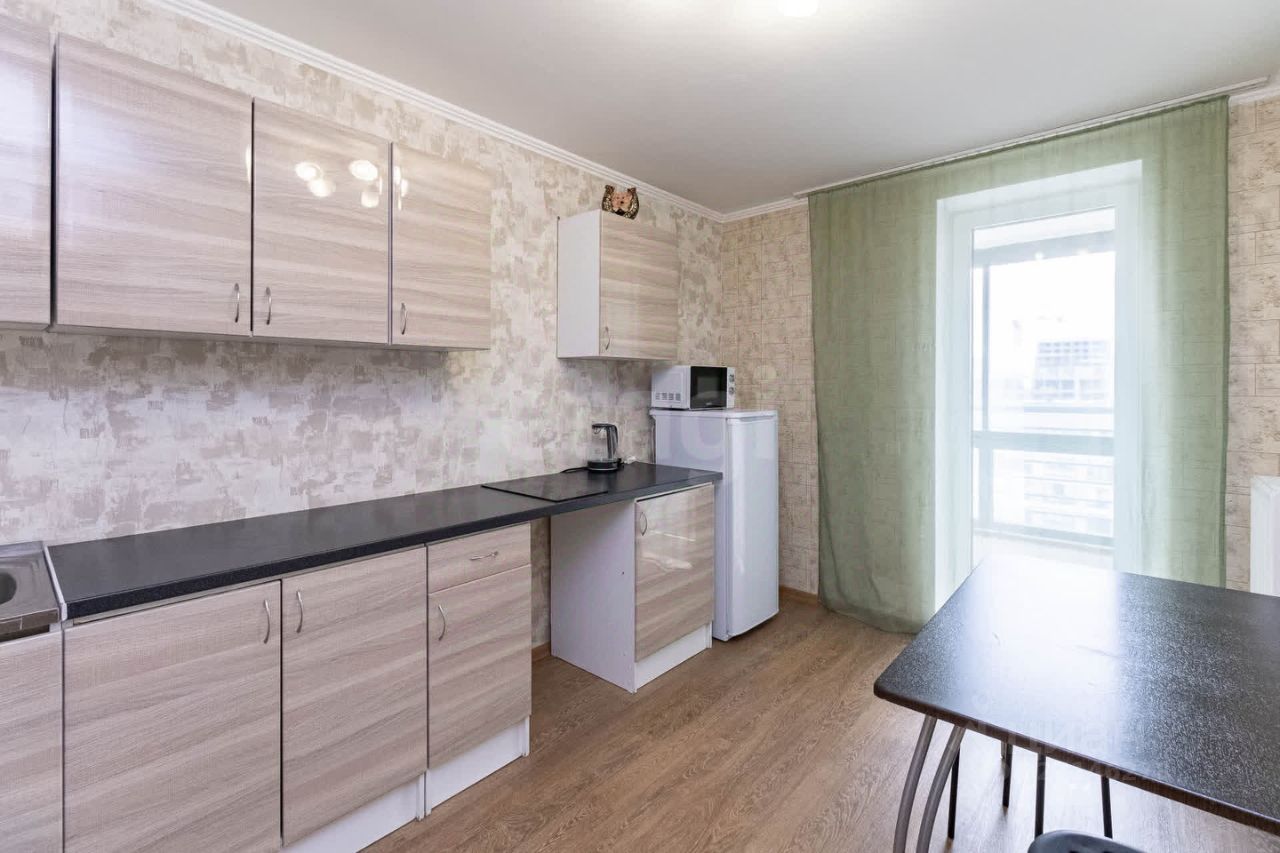 Если вы желаете купить квартиру от собственника в центре г. Тюмени Ваша мечта может реализорваться . .Продается однокомнатная квартира в жилом комплексе ''Новин'' от застройщика ''Брусника'', расположенном в центре Тюмени. Объект находится на закрытой благоустроенной территории с продуманным ландшафтным дизайном, детскими и спортивными площадками, что создает комфортную среду для жизни. Окна выходят во двор, обеспечивая тишину и приватность. Квартира с качественным современным ремонтом: ровные стены, практичные напольные покрытия, санузел с новой сантехникой. Встроенная кухня, шкафы-купе, спальные места и бытовая техника (холодильник, стиральная машина) остаются новому владельцу, что позволяет заселиться без дополнительных затрат.