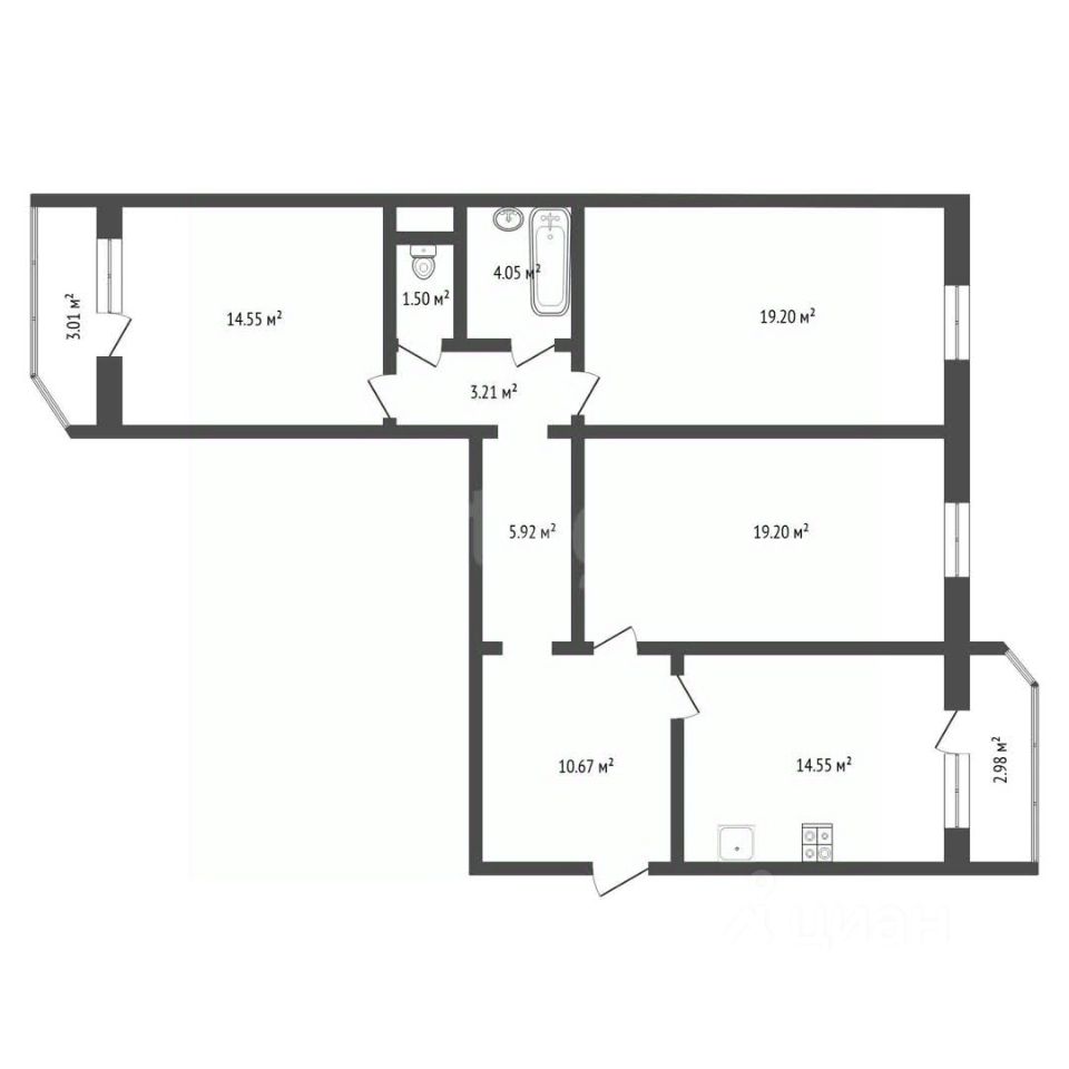 Объект предлагается в отличном состоянии с дизайнерским ремонтом и готовой инфраструктурой для комфортного проживания. Планировка включает три изолированные комнаты, кухню 14 м² и два застекленных балкона. В квартире выполнена узаконенная перепланировка с объединенным санузлом, где установлена инсталляция и проточный водонагреватель.
