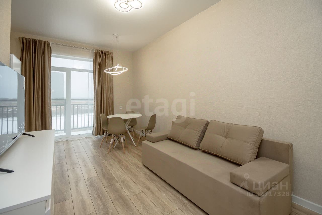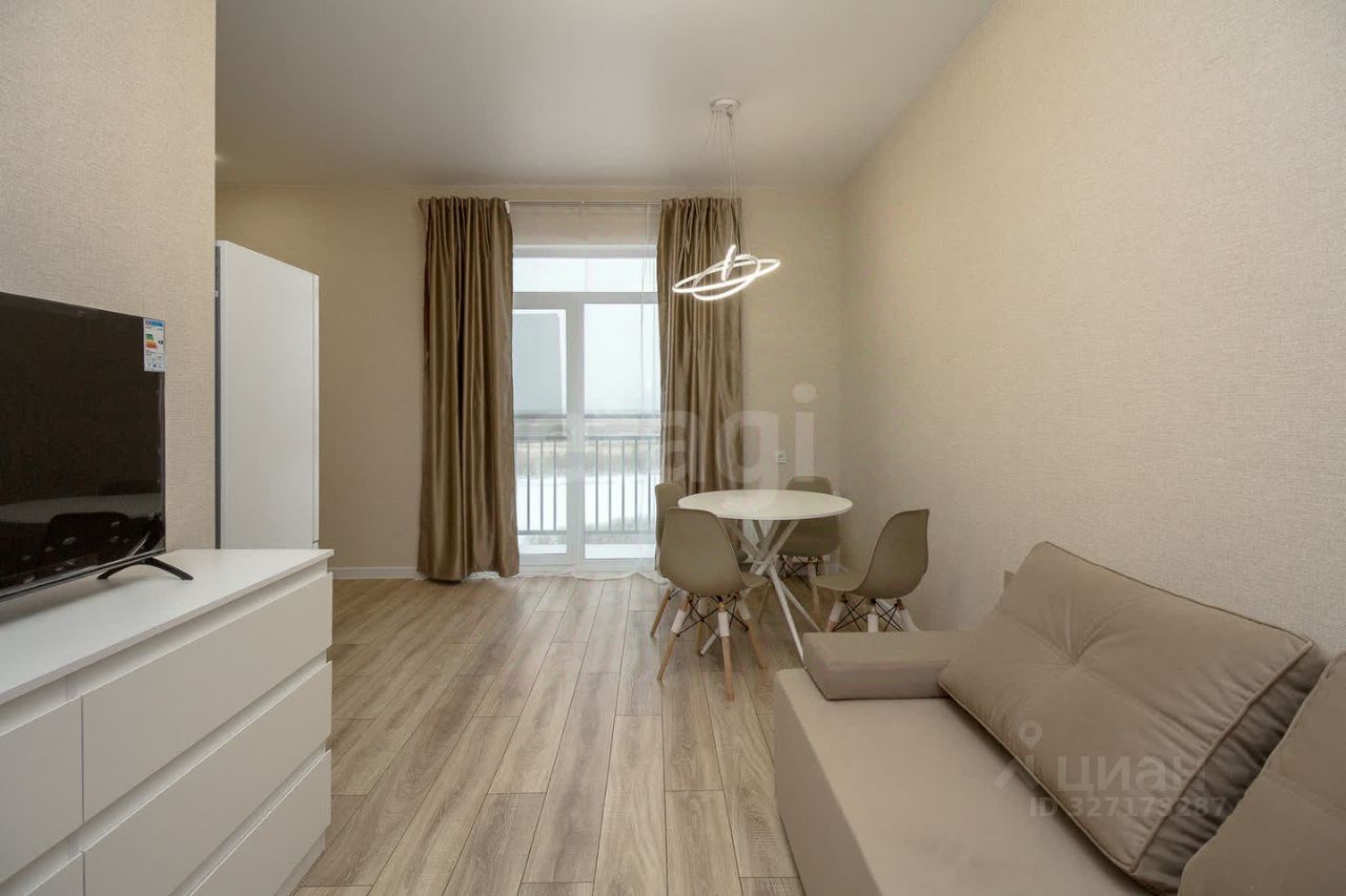 Квартира расположена на 9 этаже с панорамным окном и выходом на французский балкон, откуда можно будет любоваться шикарными видами на реку.