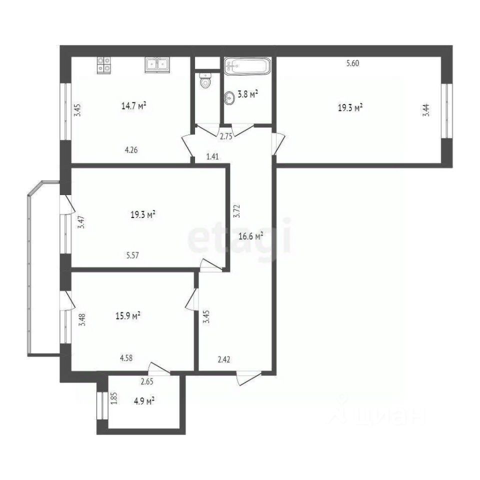 Удачная планировка включает три светлые комнаты, просторную кухню, раздельный санузел и балкон с двумя выходами, что позволит вам наслаждаться свежим воздухом в любое время.