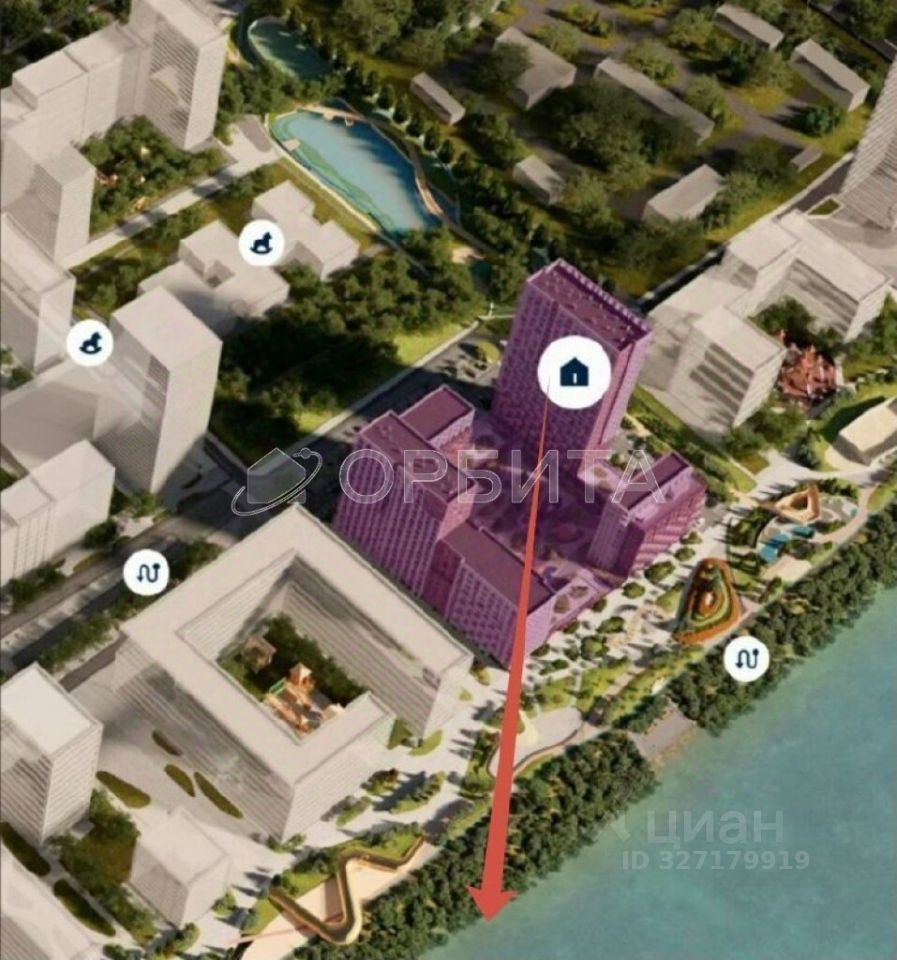Преимущества: собственная набережная, пеший мост в центр, спортплощадки, детсады и школа рядом.