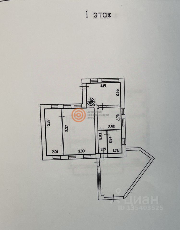 1 этаж: кухня, гостиная, санузел, котельная, спальня.