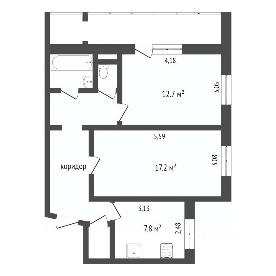 В продаже просторная двухкомнатная квартира, площадью 52.9 кв.м.