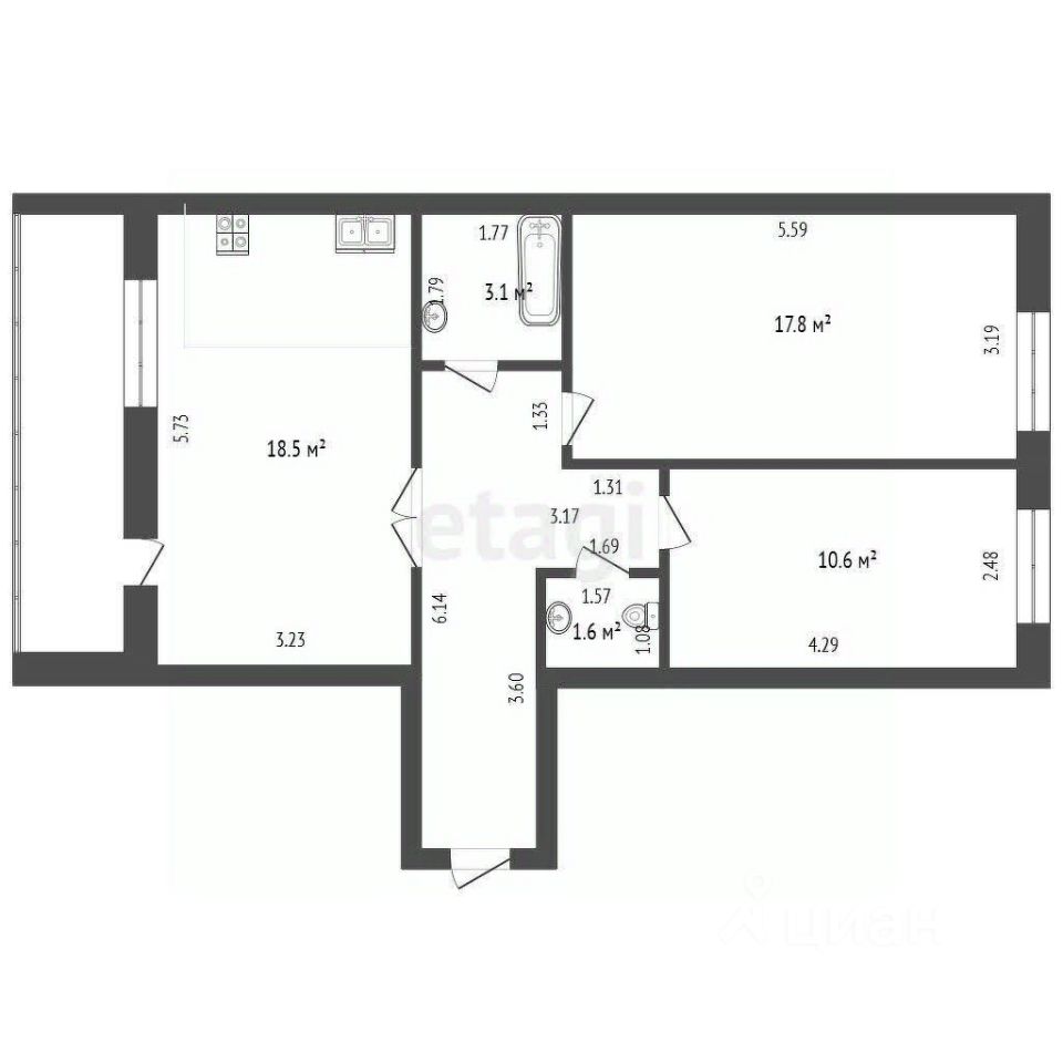О квартире: Удобная и современная планировка Кухня гостиная 18,5 кв.м с выходом на балкон. 2 комнаты -17,8 м2 и 10,6 м2 В квартире современный ремонт, мебель и техника.