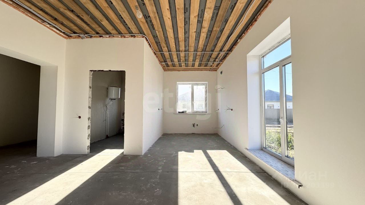 В доме удобная планировка: большая кухня-гостиная с выходом на террасу, 3 просторные спальни, 2 санузла, котельная и прихожая с местом под гардеробную.