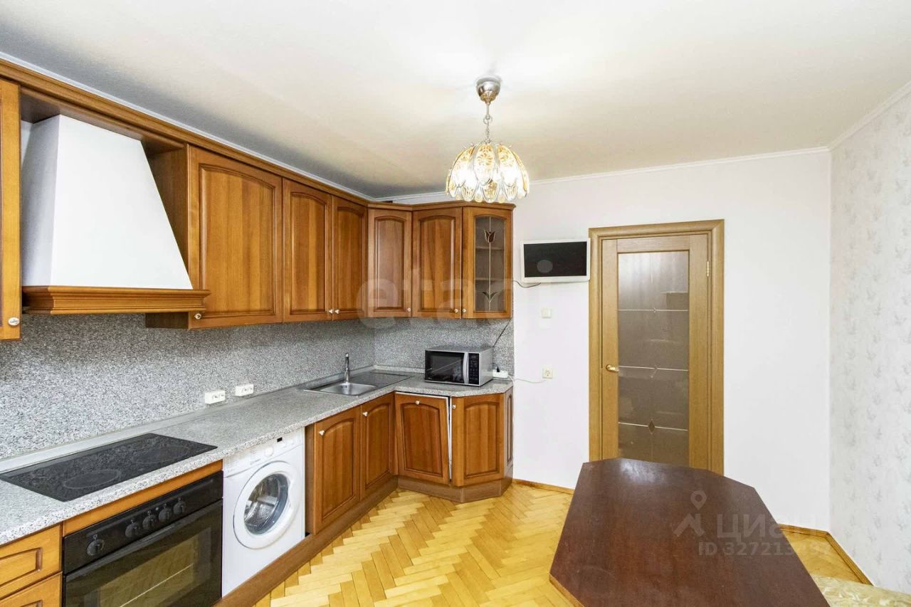 В каждой комнате есть места для сна и мебель для хранения, в гостиной установлен диван, кондиционер и есть выход на застекленный балкон. На кухне установлены кухонный гарнитур со встроенной техникой (вытяжка, духовой шкаф, варочная панель, посудомоечная машина, стиральная машина), микроволновая печь, два холодильника и обеденный стол с диваном.