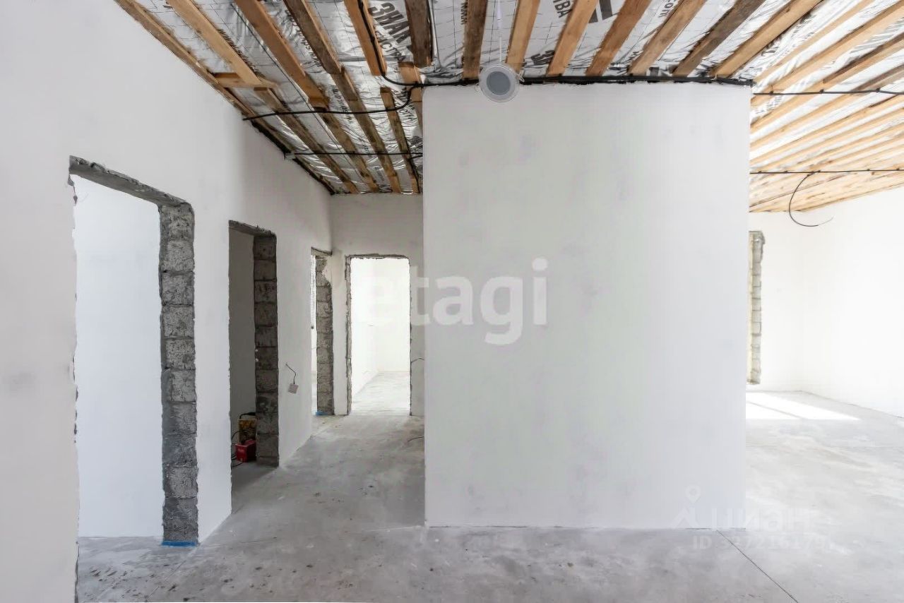 Дом продаётся в предчистовой отделке: стяжка пола, стены выровнены под маяк, разводка электричества. Отопление: тёплый пол по всему периметру от котла.Участок ровный, высокий 4 соток. Остановка рядом. До города 20 минут езды.Рядом школа, детский сад, магазины, фельдшерский пункт, аптека.