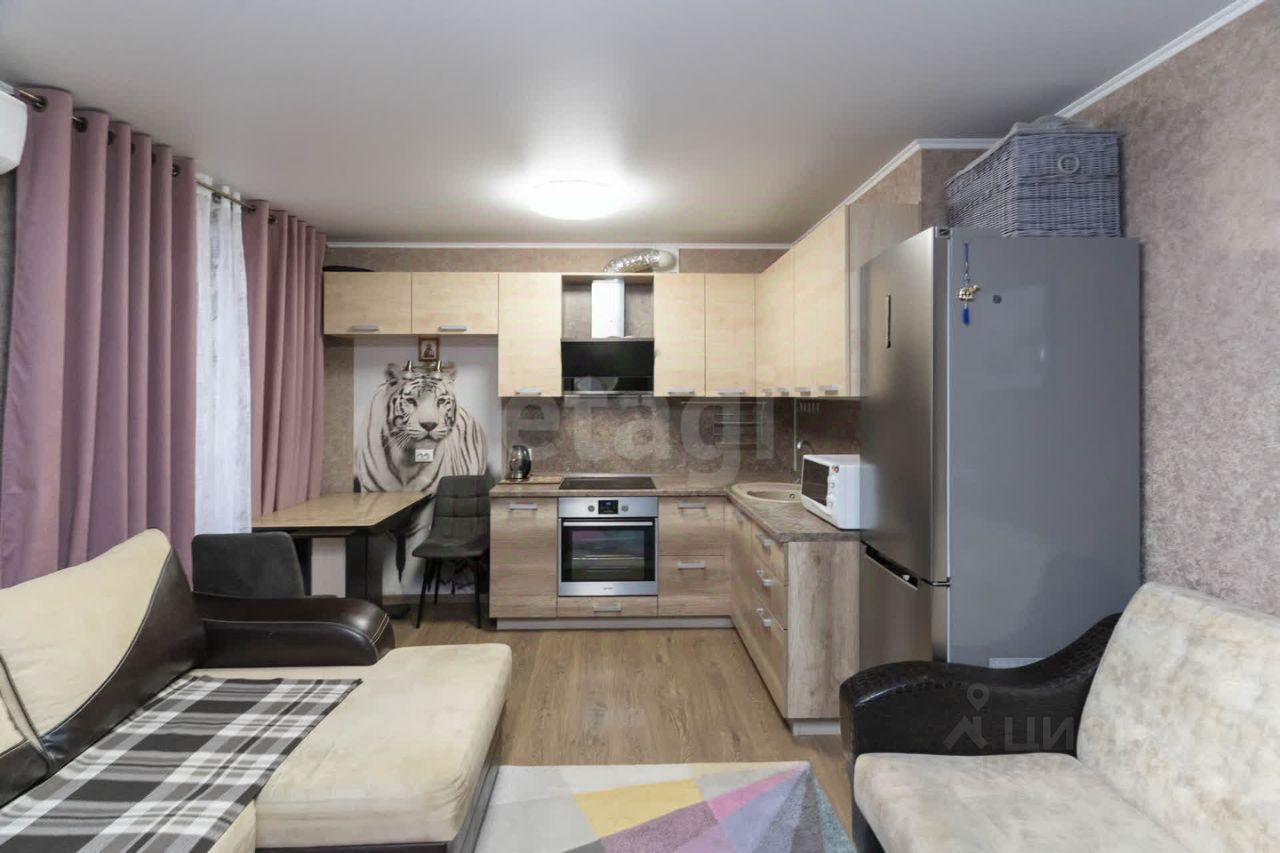 Остается вся мебель, кухонный гарнитур, духовой шкаф, все что представлено на фотографиях, кроме холодильника