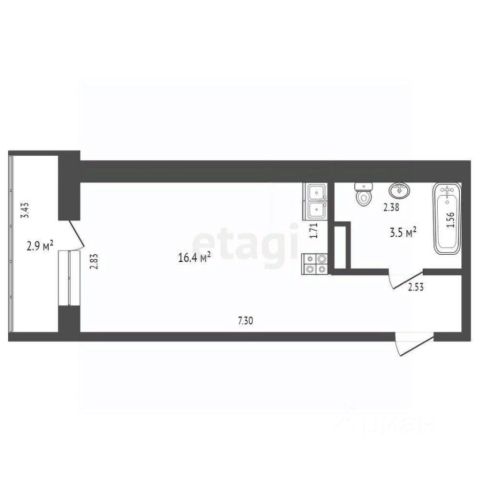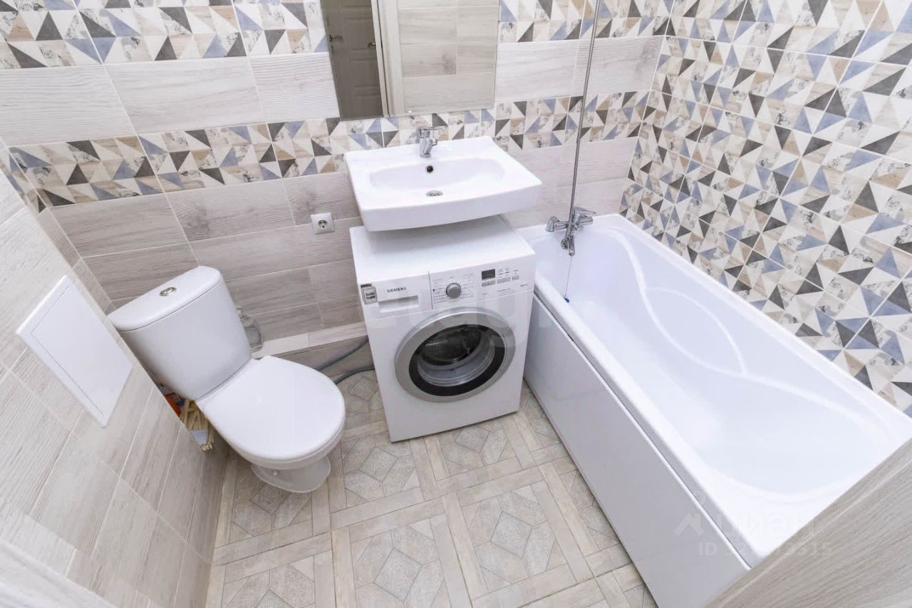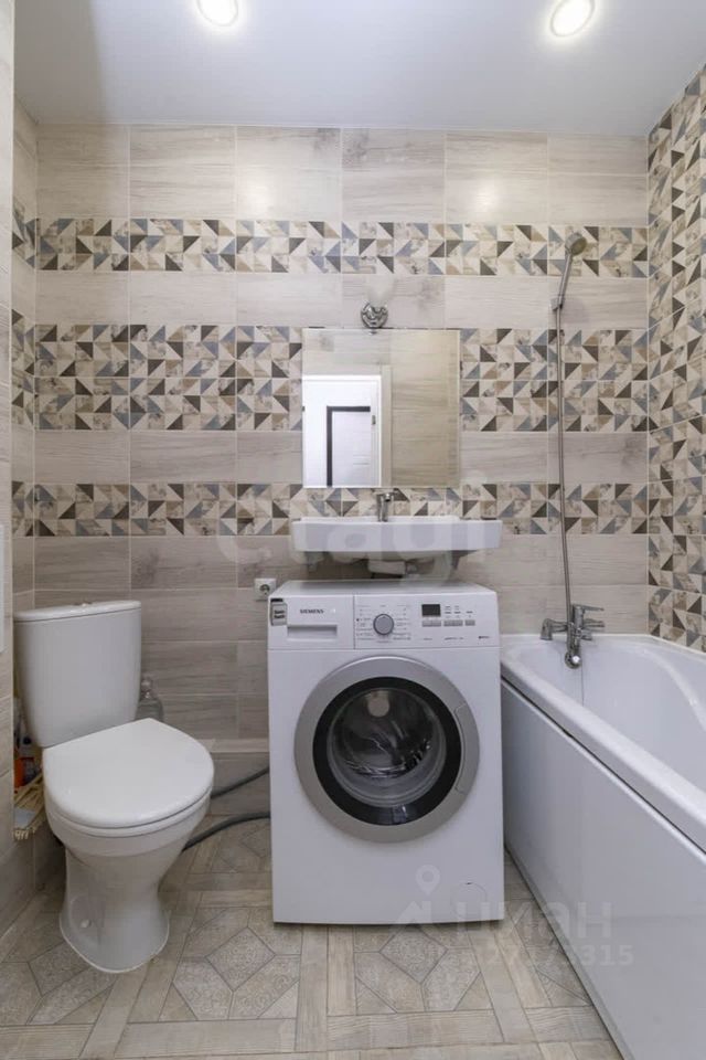 Квартира оснащена продуманным освещением, выделяющим входную группу, кухонную зону и зону отдыха. На полу прихожей и ванной комнате уложен керамогранит, а в зоне отдыха — качественный ламинат, что добавляет дополнительный комфорт. В ванной предусмотрена удобная зона мойки над стиральной машиной, что делает использование пространства максимально функциональным.
