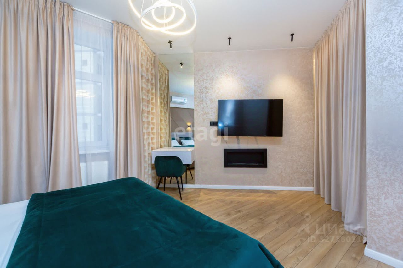 Квартира располагает просторной комнатой и кухней, завершенный ремонт создают атмосферу уюта и гармонии. Большие окна наполняют пространство естественным светом, а современная планировка позволяет максимально эффективно использовать каждый квадратный метр. Вы сможете создать здесь свой идеальный уголок, где будет приятно проводить время с семьей и друзьями.