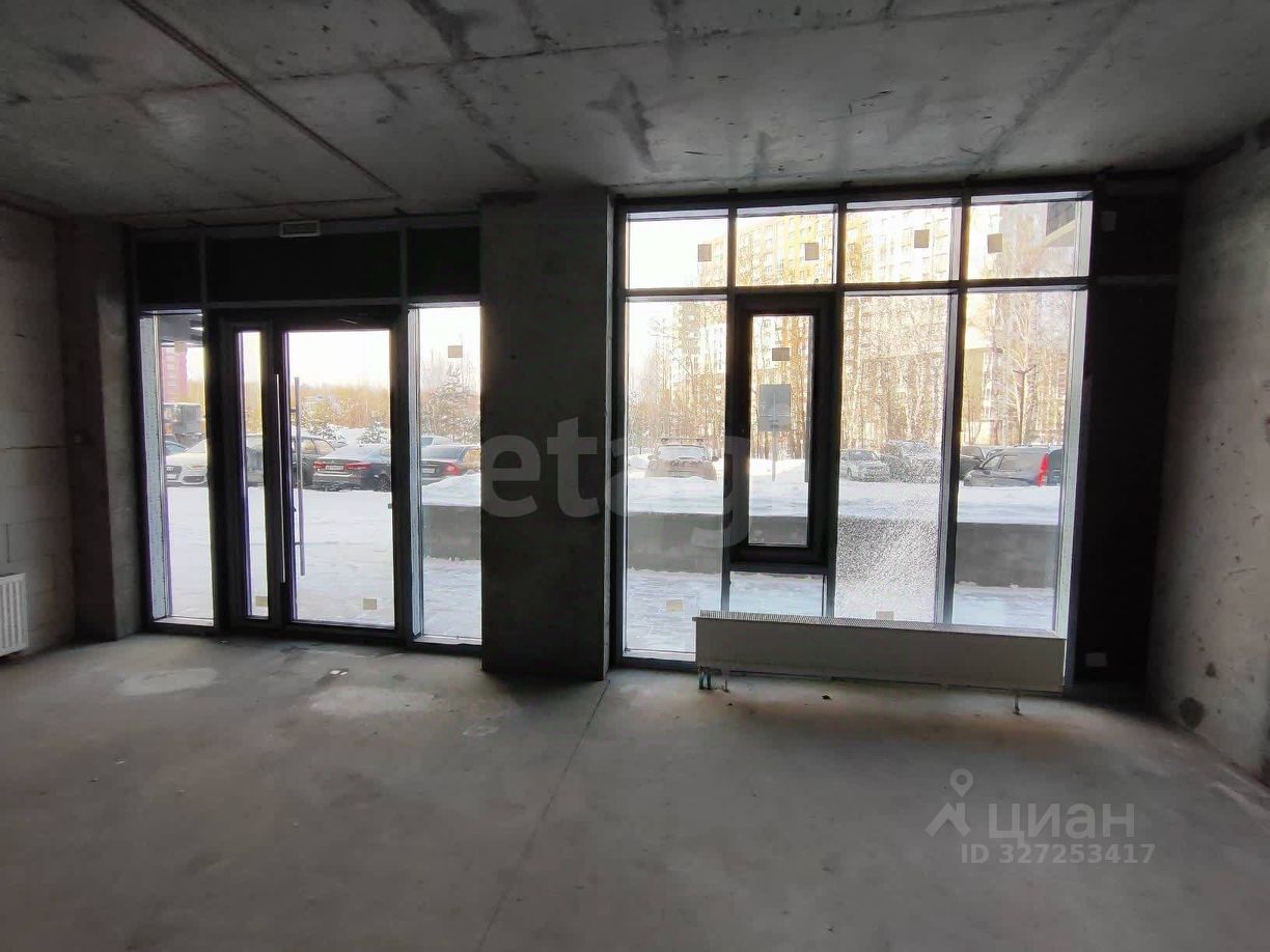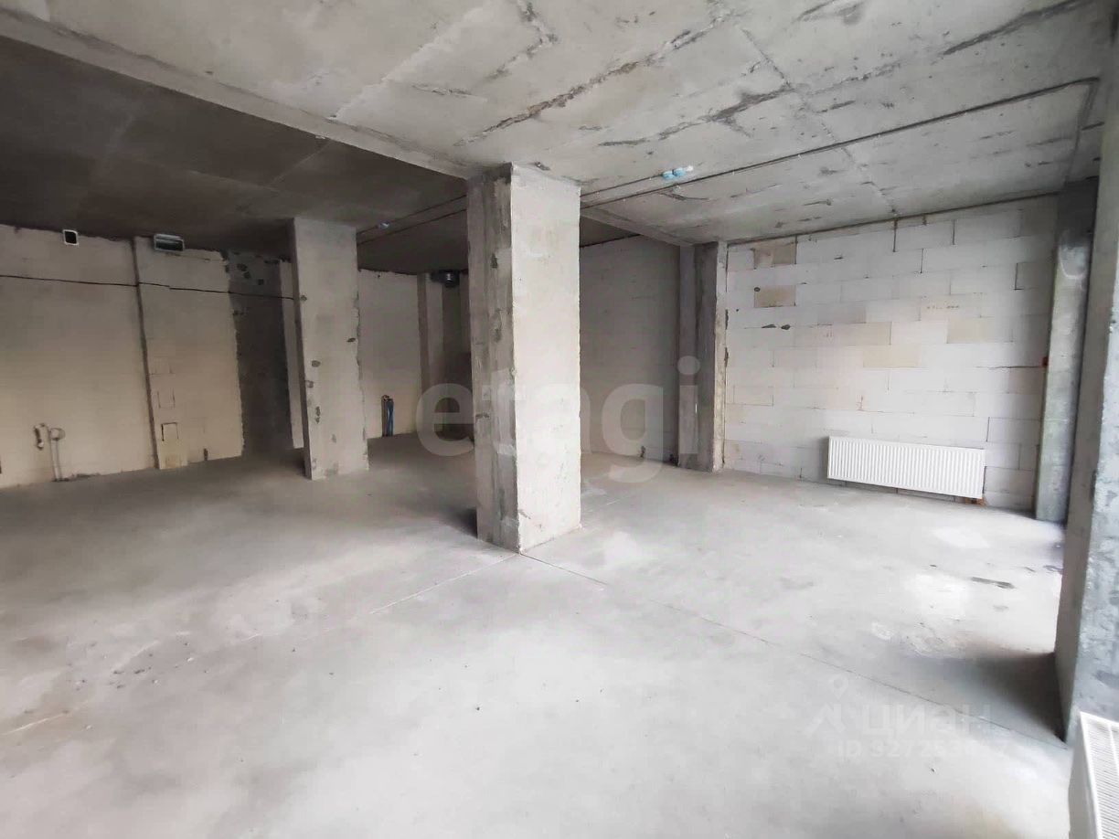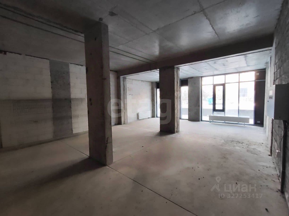 Большое светлое помещение с панорамными окнами, черновая отделка.