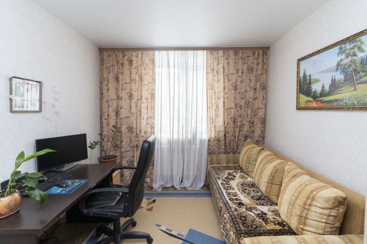 Продается просторная трехкомнатная квартира в надежном панельном доме 125-й серии. Объект отличается рациональной планировкой с тремя изолированными комнатами, что обеспечивает приватность для всех членов семьи или возможность организации кабинета. Помещения получают много естественного света благодаря удачной ориентации. В квартире выполнен аккуратный косметический ремонт, установлены пластиковые стеклопакеты, санузел раздельный. Просторная застекленная лоджия служит дополнительным функциональным пространством. Ключевым преимуществом является развитая инфраструктура в непосредственной близости: во дворе расположен детский сад 146, в пешей доступности — средняя школа 63, продуктовые магазины, отделение Сбербанка и спортивный комплекс ''Рубин''.