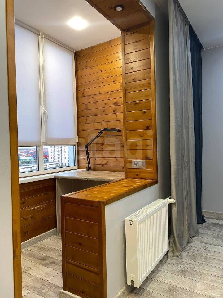 Продается студия 24.4 м² с дизайнерским ремонтом на 7 этаже 25-этажного дома Описание: Предлагается к продаже светлая и практичная студия с современным дизайнерским ремонтом, расположенная на 7 этаже 25-этажного монолитного дома. Объект полностью готов к проживанию и сочетает в себе эстетику, функциональность и выгодное расположение. Ключевые преимущества: Простор и свет: Площадь 24.4 кв.м., высокий этаж, панорамные окна. Готовое решение: Уникальный дизайнерский ремонт, не требующий дополнительных вложений. Дополнительная зона: Застекленный балкон, оборудованный под полноценное рабочее место. Качественная планировка: Продуманная студийная планировка с совмещенной сантехникой премиум-класса.