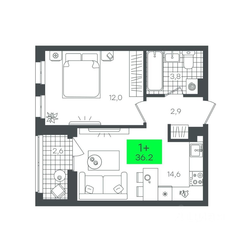 продам 1-к, Василия Малкова, гп 17 300 000 ₽