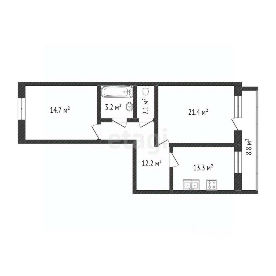 Предлагаю к покупке современную двухкомнатную квартиру с просторной кухней 13 кв.м. на комфортном 4 этаже. Спальни правильной формы 14 и 21 кв.м. позволяют комфортно разместиться семье с одним или 2 детьми.