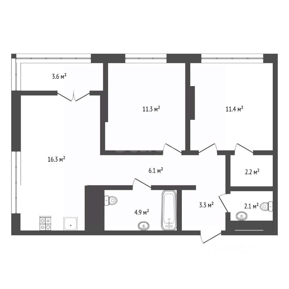 Функциональная планировка: Просторная кухня-гостиная более 16 кв.м. с выходом на лоджию с панорамным остеклением в пол. Две уютные спальни, одна из которых со своей гардеробной. Два санузла для вашего удобства, из второго можно сделать удобную хозяйственно-постирочную комнату.