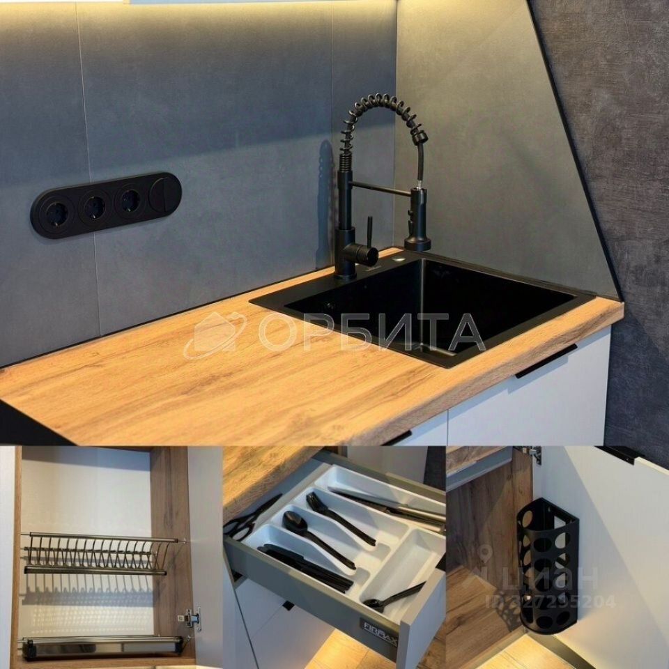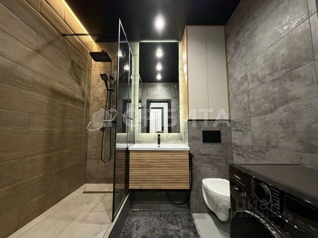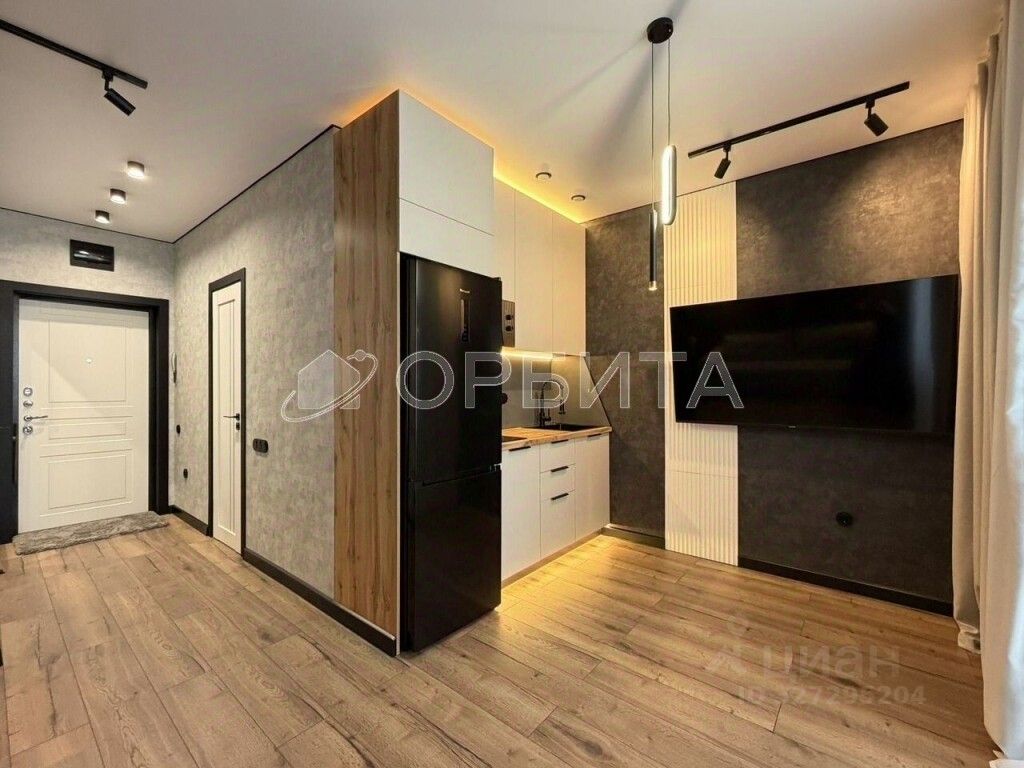 В комплекте остаётся мебель и бытовая техника: кухонный гарнитур, телевизор 65'', стирально-сушильная машина, диванкровать, контурное и секционное освещение.