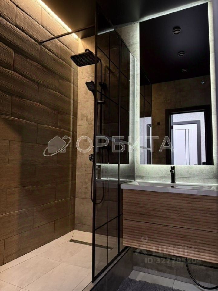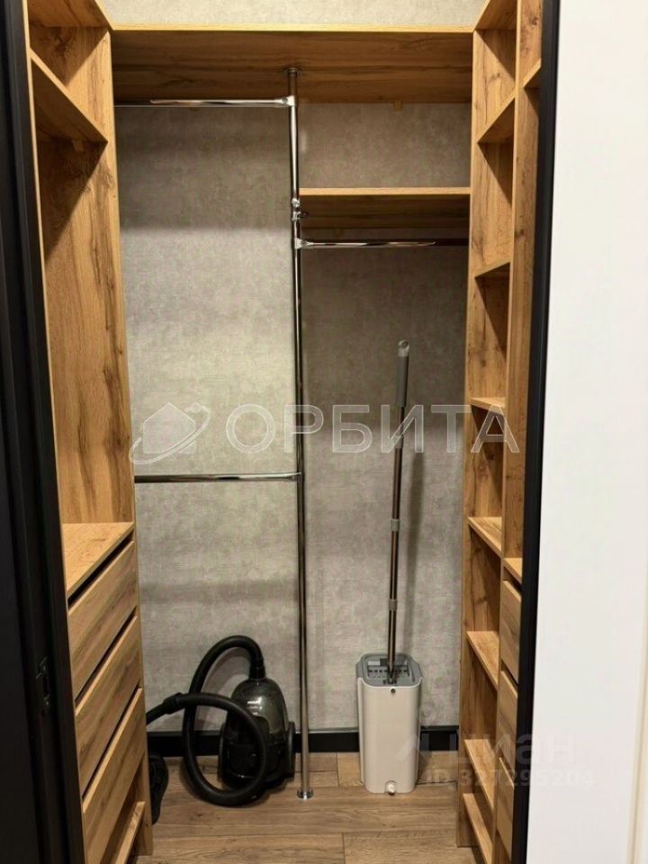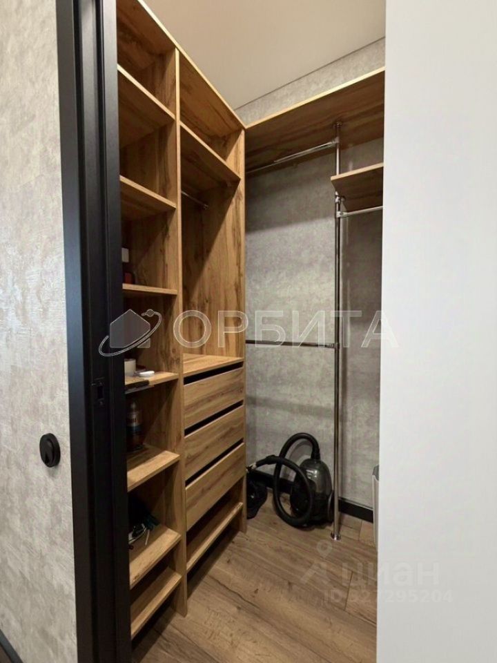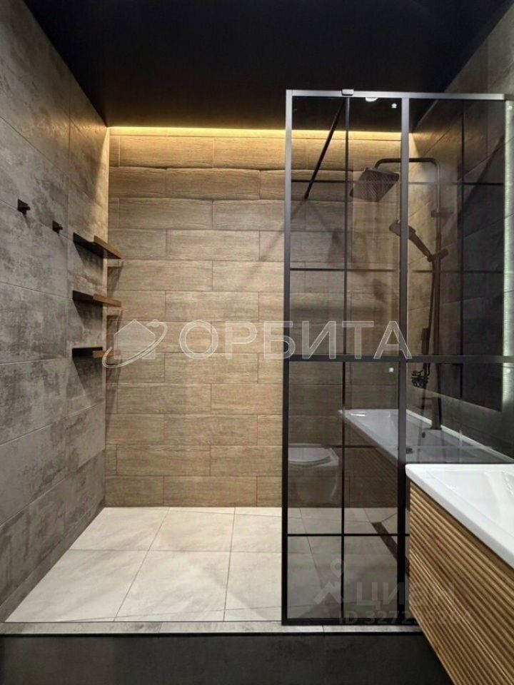 Просторная гардеробная комната, совмещённый санузел с эффектом парящего потолка.