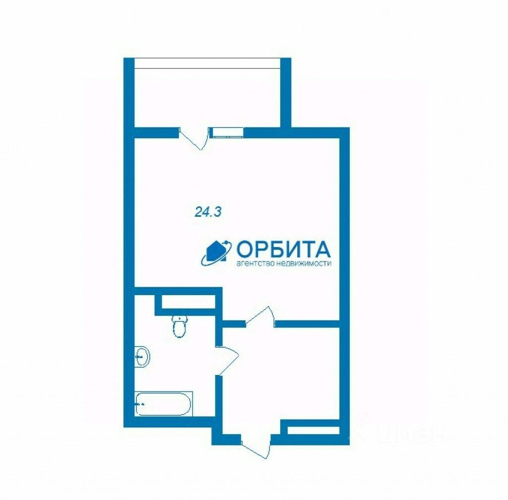 Общая площадь квартиры: 24,3 кв.м. + лоджия: 4,2 кв.м.