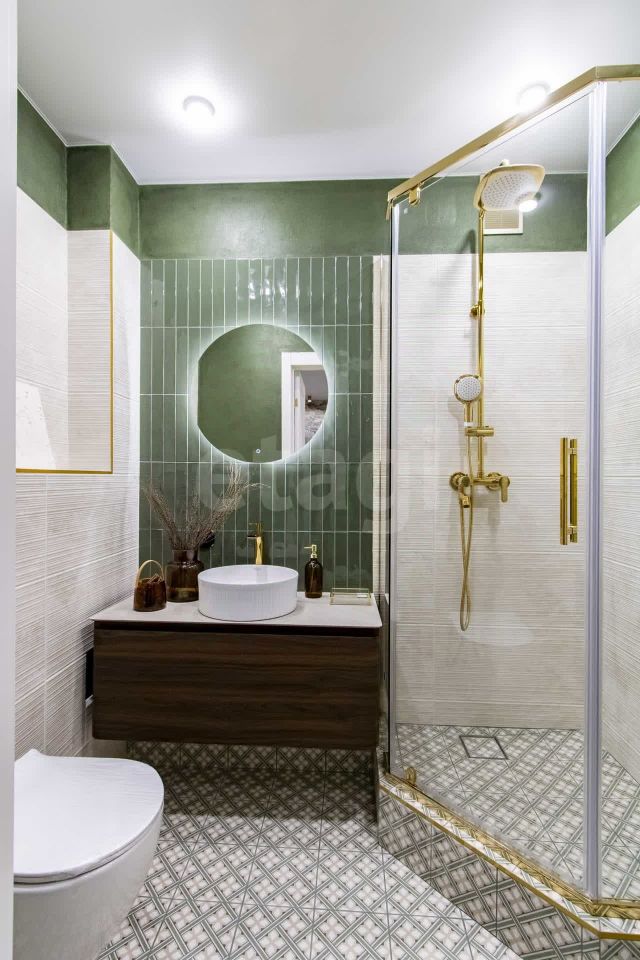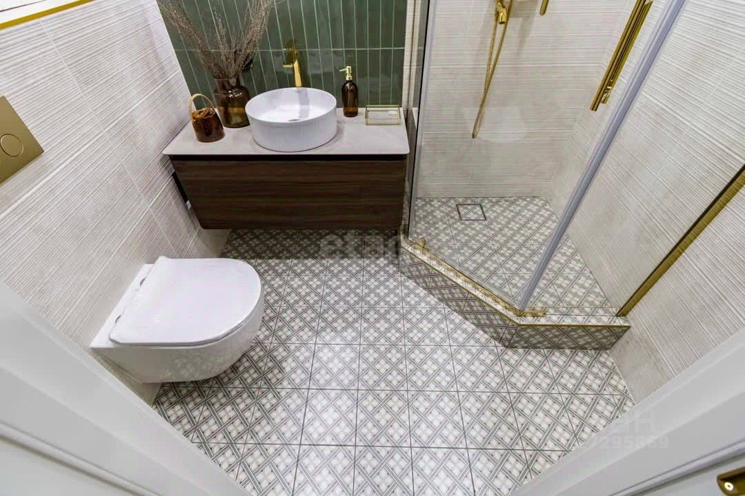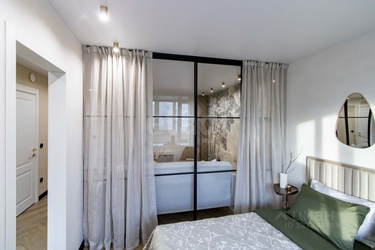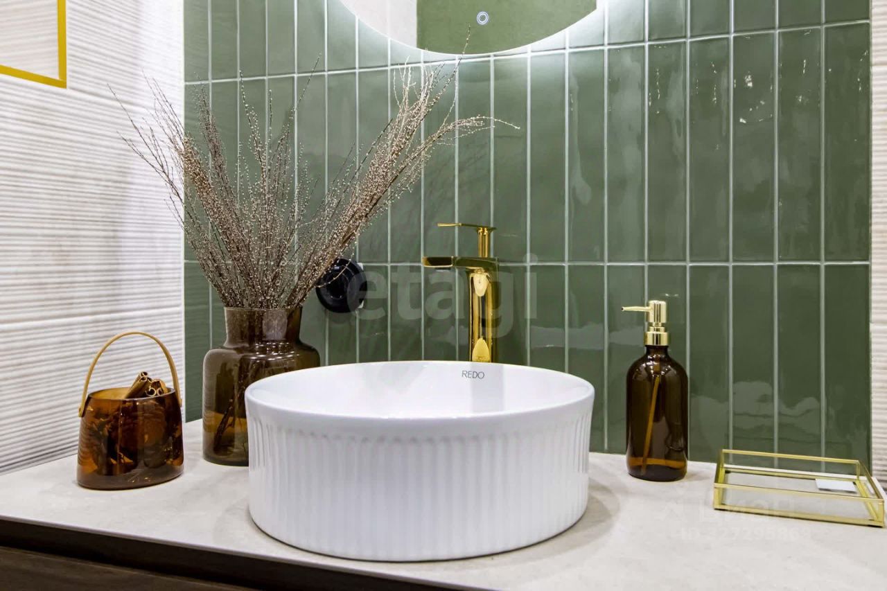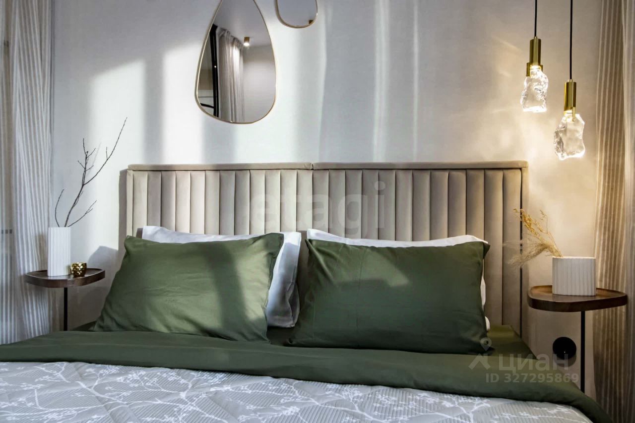 Главные преимущества: • Стиль и уют: Интерьер выполнен в приятной теплой светлой гамме. Квартира выглядит дорого и элегантно. • Детали интерьера: Изысканная золотая фурнитура, декоративные элементы (элегантные полоски) и эффектная фреска с пейзажем на стене создают неповторимую атмосферу.