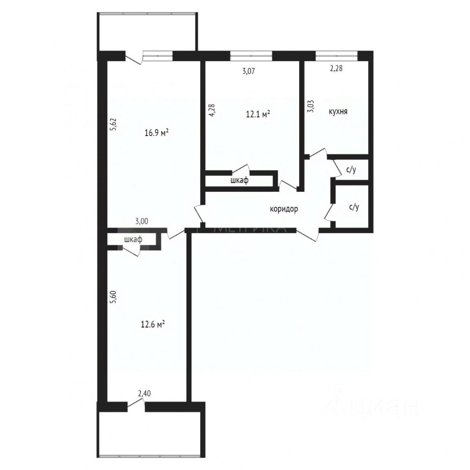 Продается большая светлая 3-комнатная квартира в Калининском районе, микрорайон Южный!