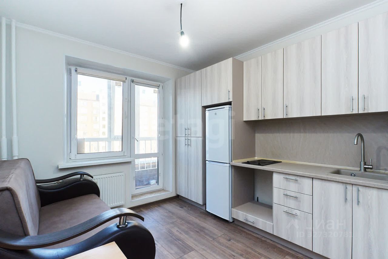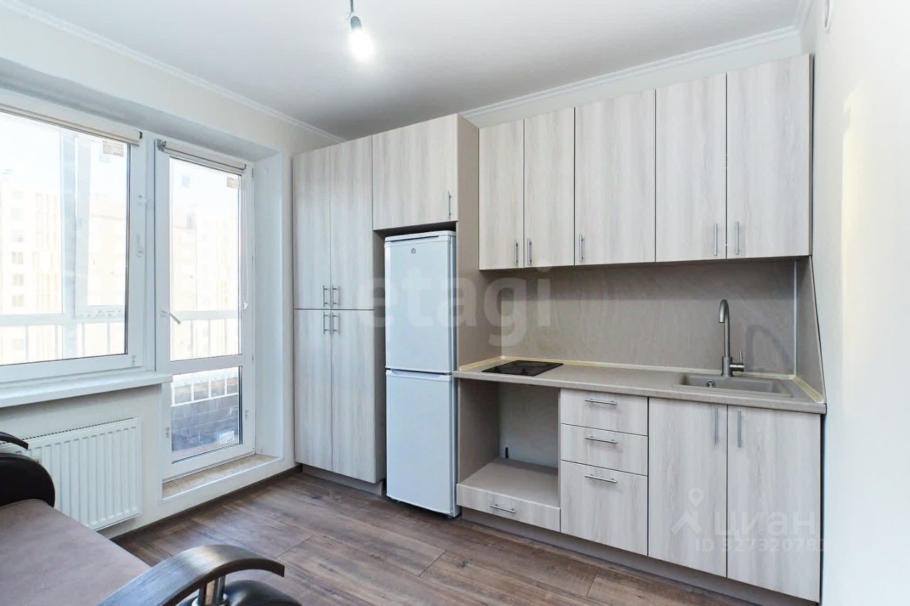 Ремонт выполнен из качественных материалов, в нейтральных тонах, вместительный кухонный гарнитур с варочной поверхностью и местом под духовой шкаф.