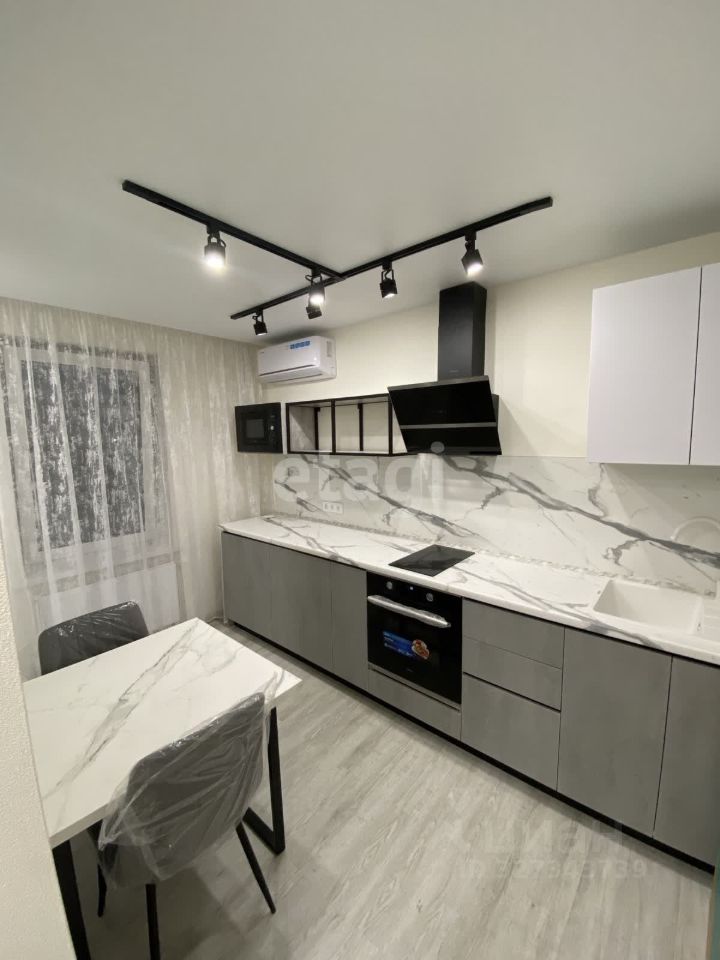 В квартире выполнен стильный современный ремонт с использованием высококачественных материалов в нейтральных оттенках, что делает интерьер универсальным и легко адаптируемым под ваш вкус. Здесь есть все необходимое для комфортной жизни: функциональная кухня со встроенной техникой, удобная обеденная зона и уютная спальня.