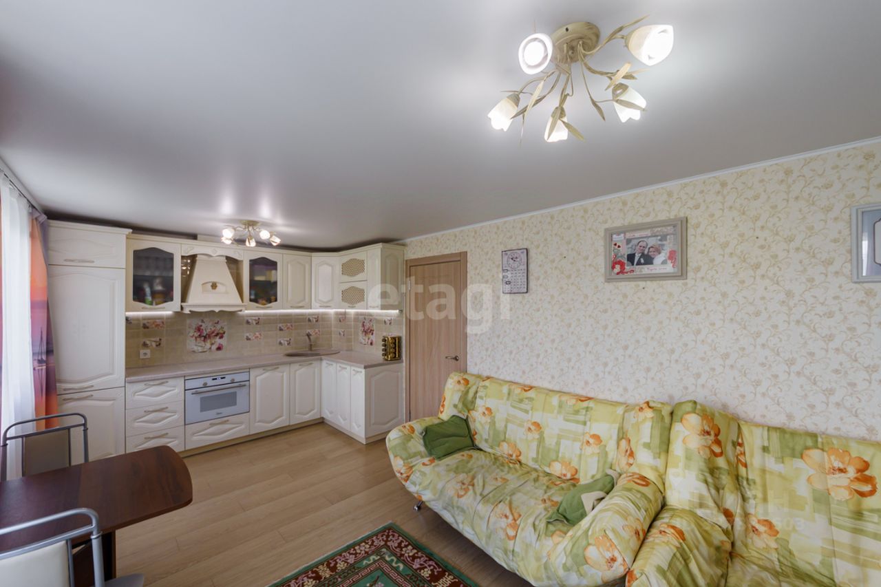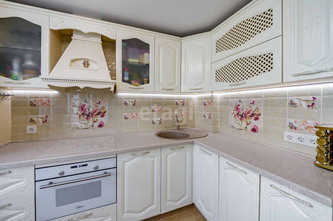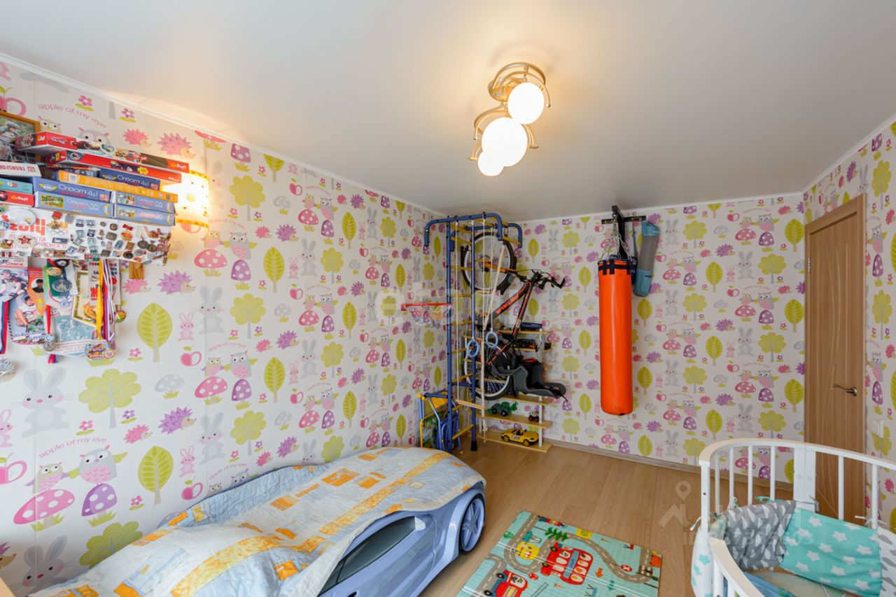 Продается уютная и теплая трехкомнатная квартира с просторной кухней-гостиной. В квартире выполнен капитальный ремонт, сделана сухая стяжка пола, заменена электропроводка и установлены безопасные розетки, поменяны батареи, в прихожей и санузле на полу кафель с системой теплого пола, в комнатах уложен качественный бельгийский ламинат 33 класса, предназначенный для влажных помещений. В прихожей на стенах декоративная штукатурка, в комнатах поклеены обои. Потолки в квартире натяжные, окна пластиковые, в том числе и на балконе, обшитом деревянной вагонкой. Санузел раздельный, выложен плиткой, установлен водонагреватель. При продаже в квартире остается кухонный гарнитур с встроенным холодильником и стиральной машиной, шкафы в прихожей и детской комнате.